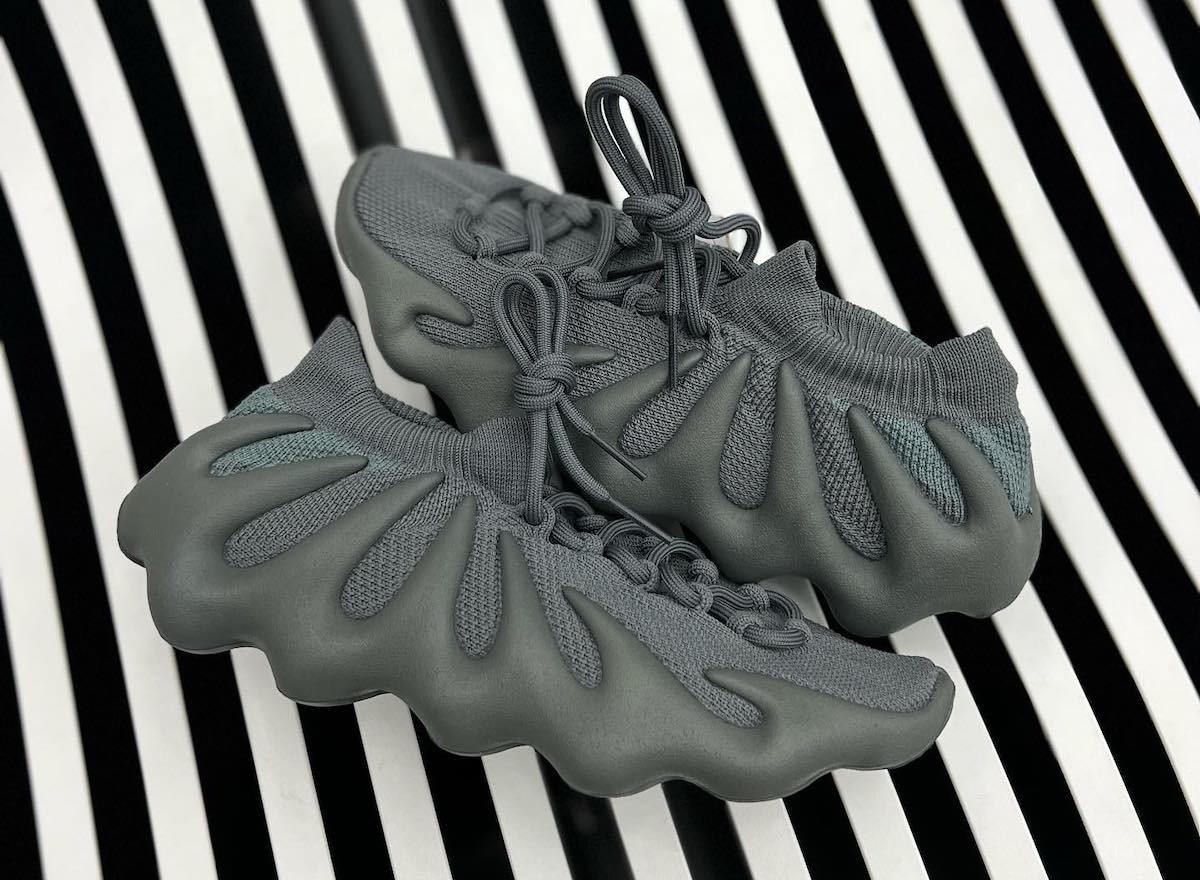鞋面采用 Yeezy 450 经典的编织材料制成,配色方面以深灰色和石青色搭配,十分的低调。