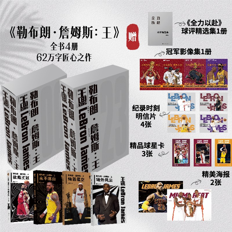 一套共 4 册,从选秀之前的意气风发,到出入联盟的锐不可当,从极具争议 “抱团” 夺冠、到重返故乡夺冠、再到湖人继续王朝。