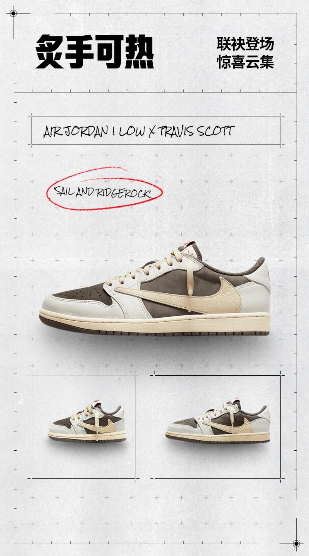 近期所有玩家最关注的鞋款,当属 Travis Scott x Air Jordan 1 Low 倒钩 3.0。