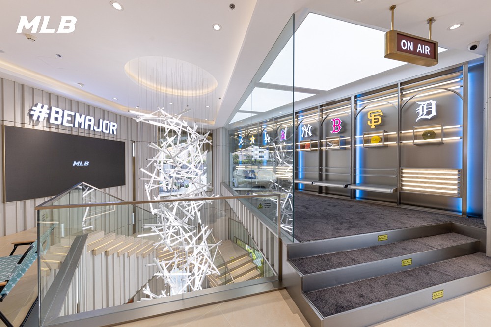 源自棒球,致敬潮流,MLB 品牌在空间设计上,以美职棒名人堂 HALL OF FAME 作为核心设计概念。