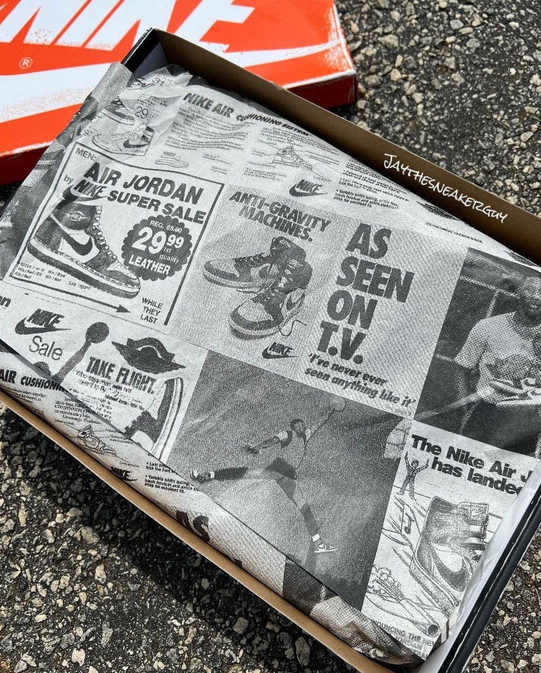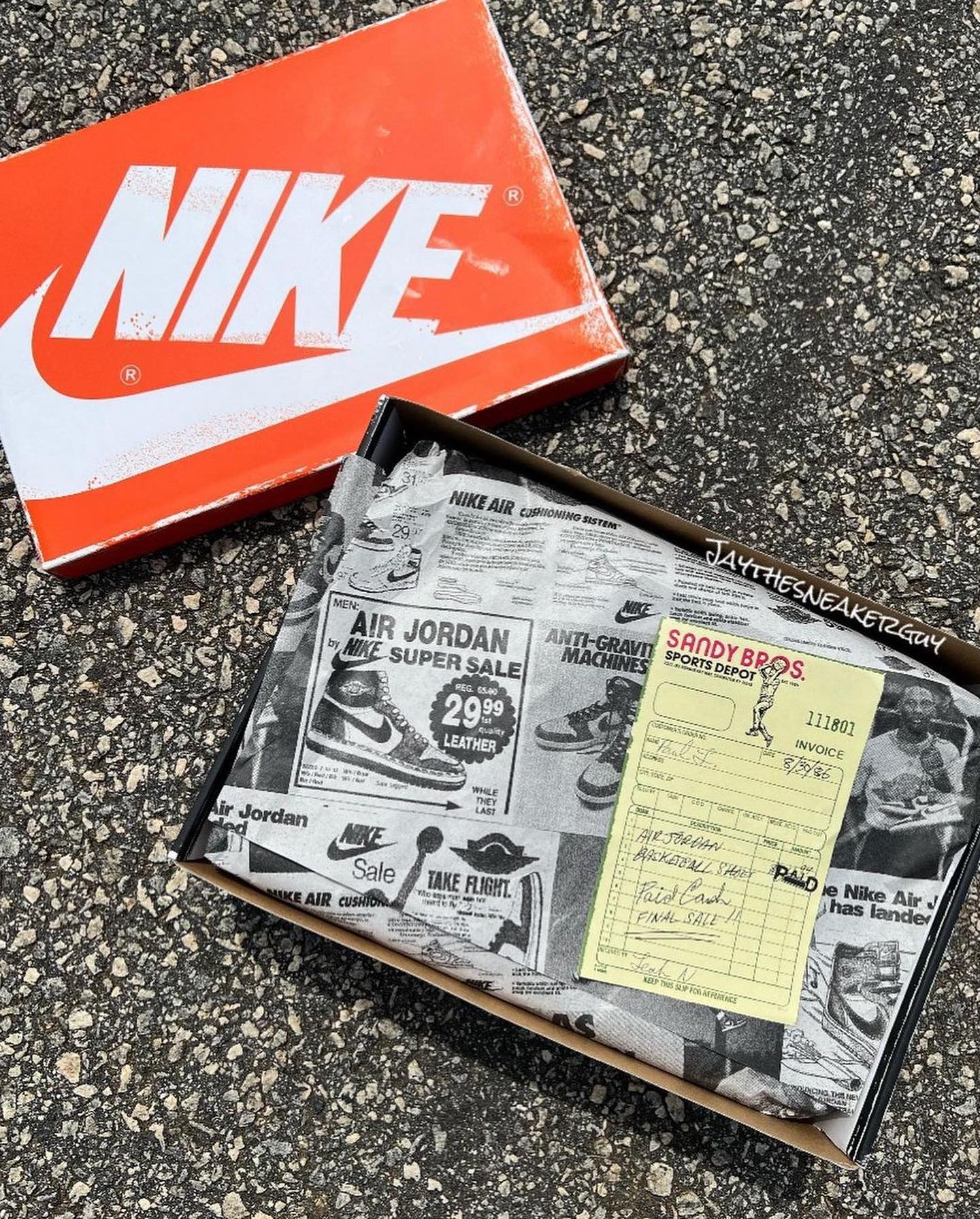 鞋盒、配件也把怀旧指数拉满,褪色效果的外包装、老报纸和老收据,让这个「怀旧套餐」近乎完美。