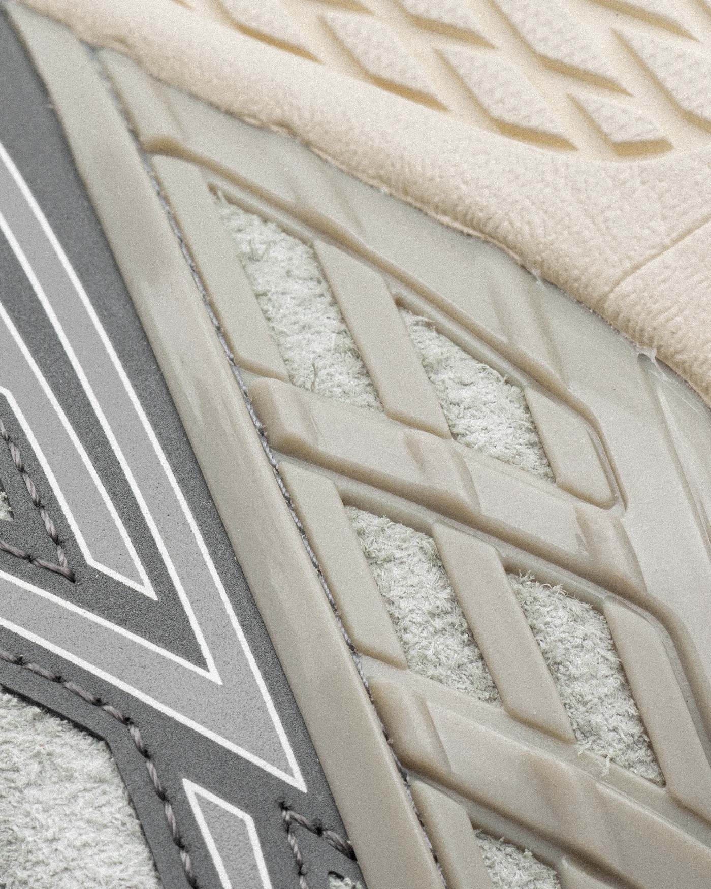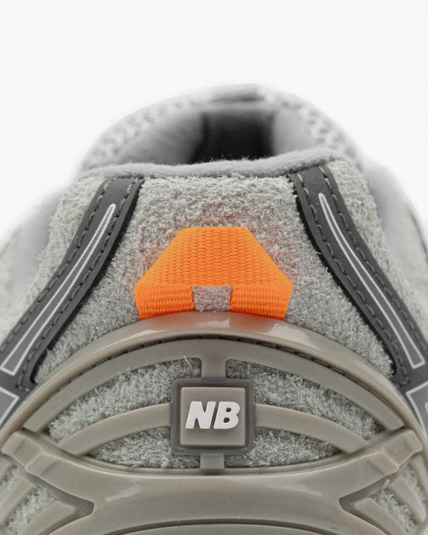 鞋舌部分维持 1906R 网布设定,同时添加上 Daisy Chain 配置;鞋身外侧两侧的 N Lock 系带系统运用深浅不同的灰色点缀。