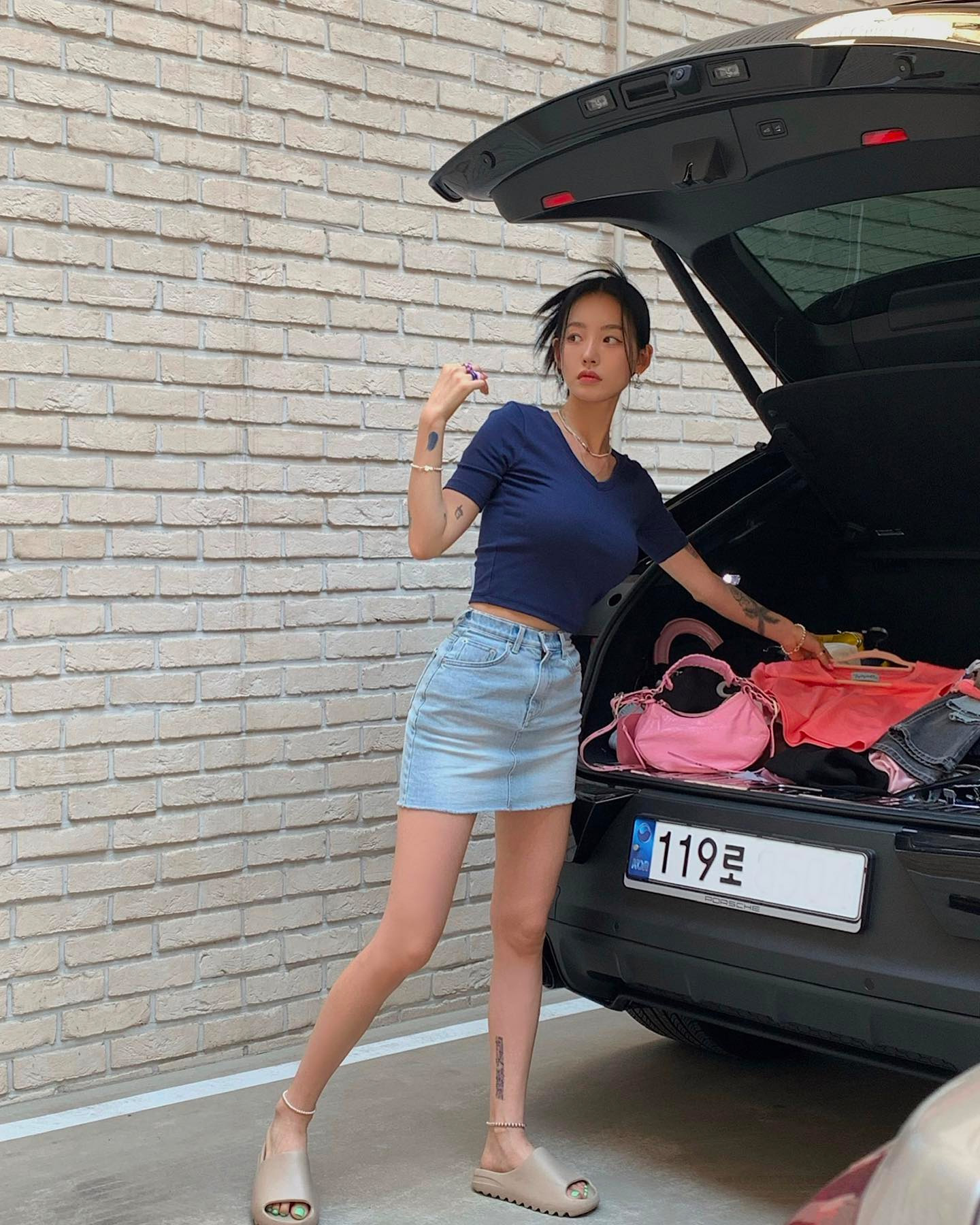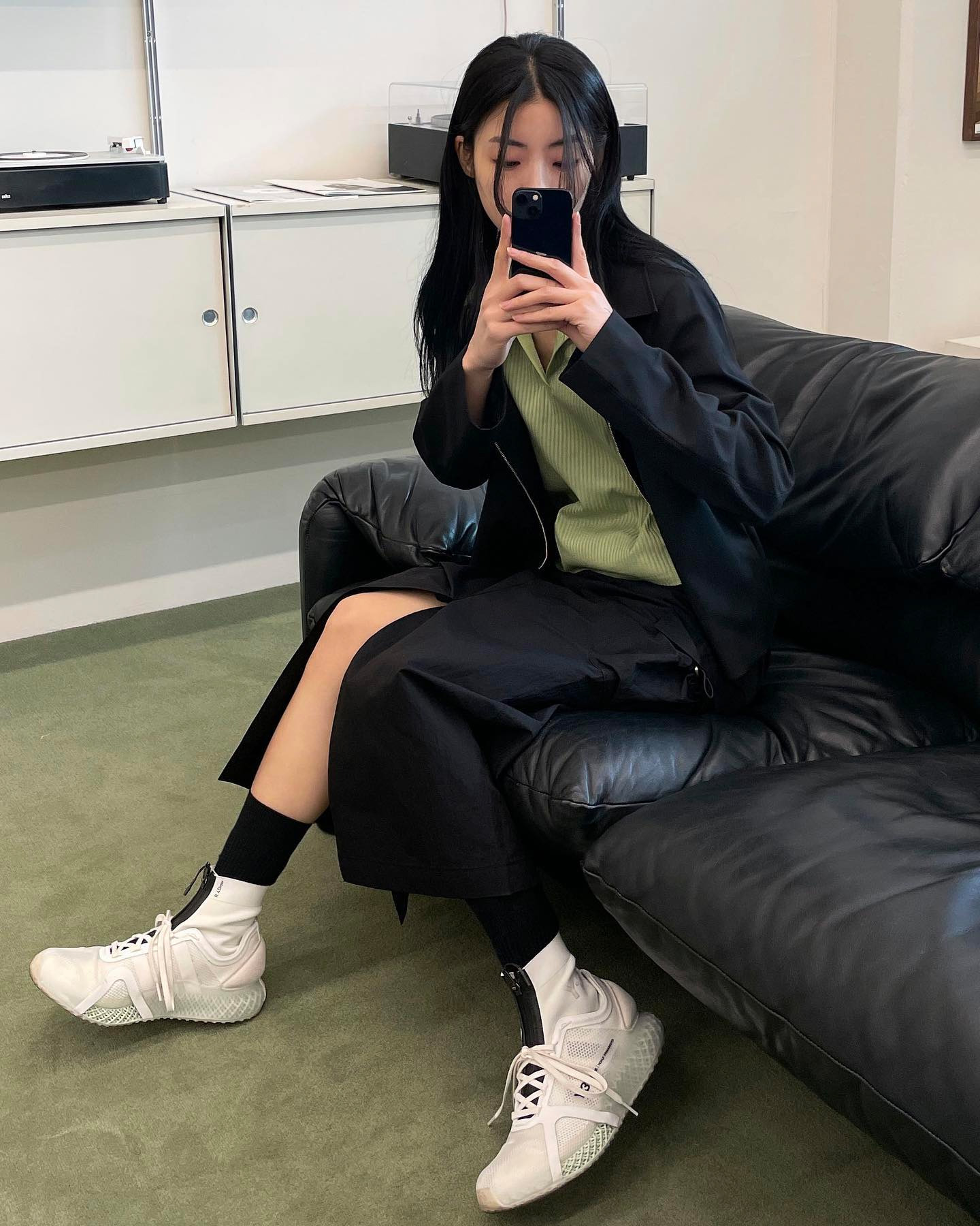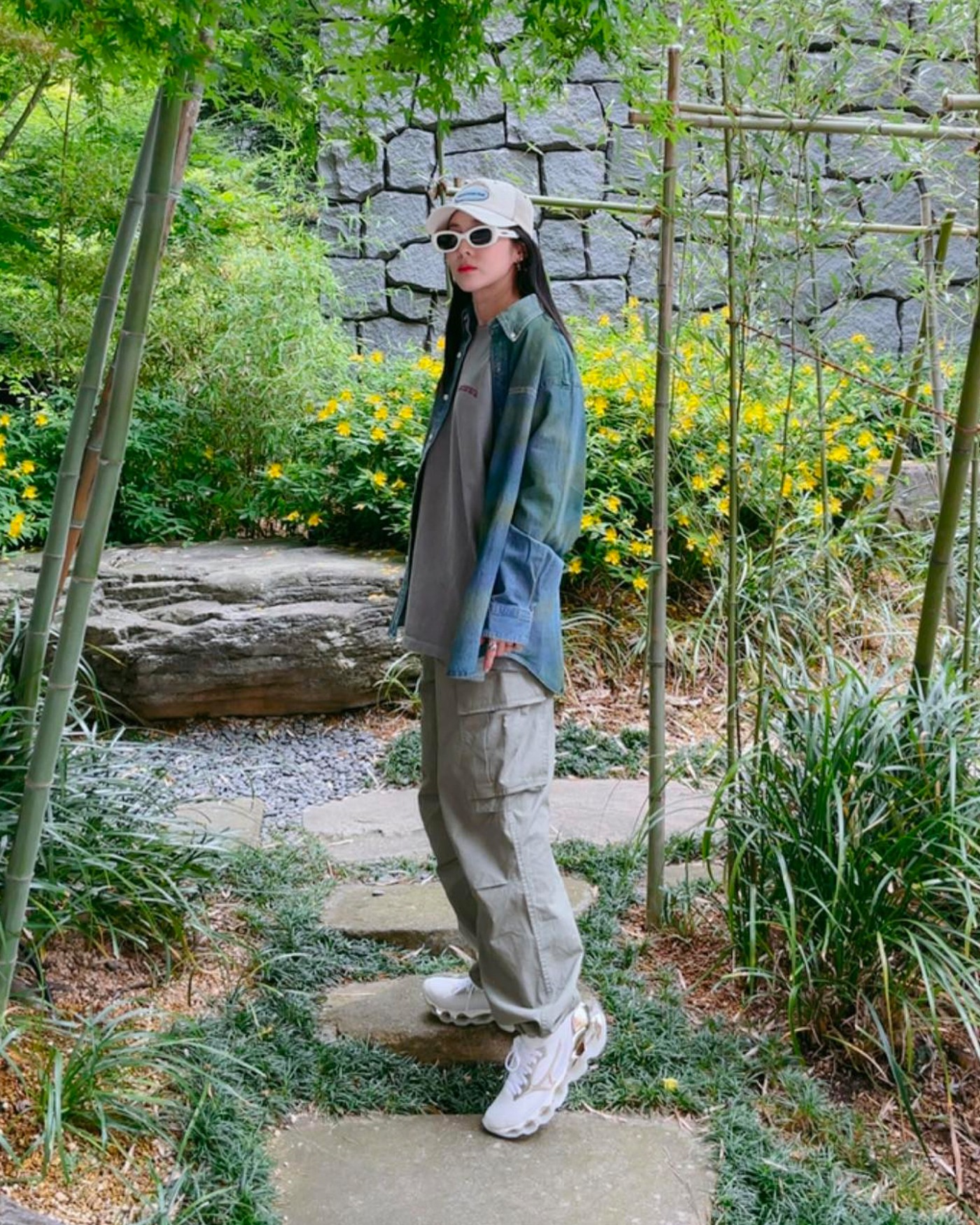 她在近期带来了不少街头感十足的随性穿搭,美津浓 x 空山基联名、火星鞋、YEEZY 洞洞鞋、BAPE STA、BV 雨靴均有出镜。