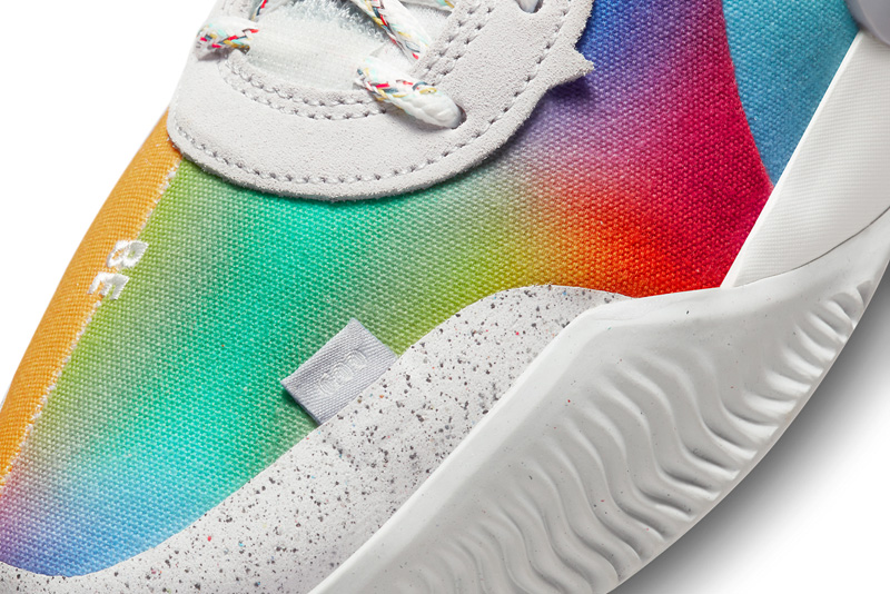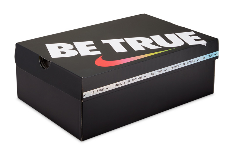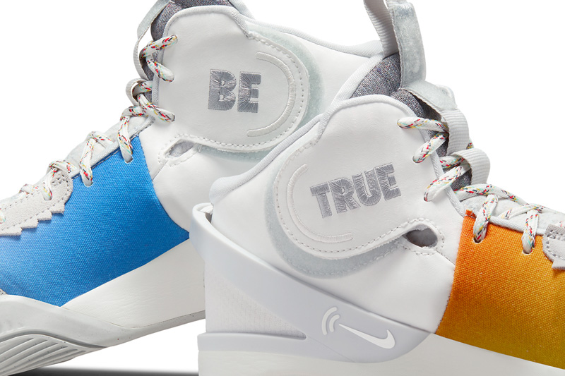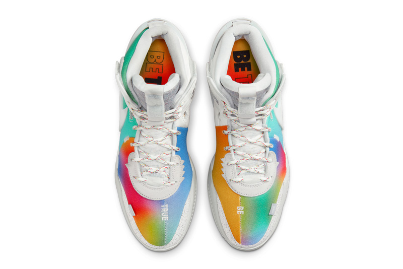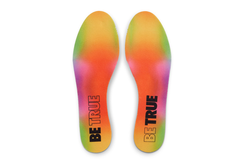 整双鞋以 “Be True” 经典的彩虹造型呈现,视觉效果格外醒目,同时辅以白色细节,使鞋身更为和谐。