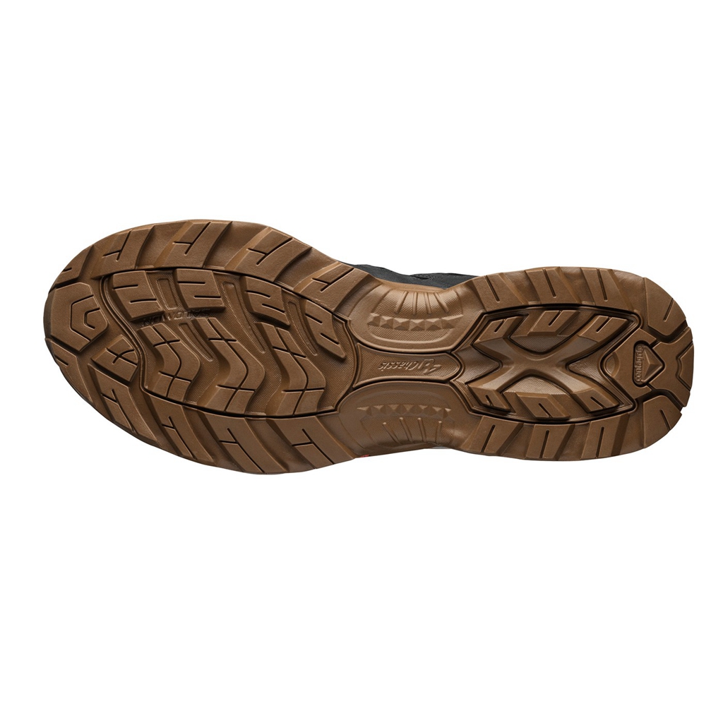 配色方面,鞋面以纯黑色为主,配合环绕鞋身的深棕色,呈现浓郁的户外风格。