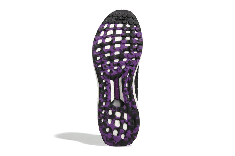 中底依旧采用传统 Boost 科技,外底用 Continental 黑紫双色交融的橡胶鞋底与配色主题相互呼应完善设计。