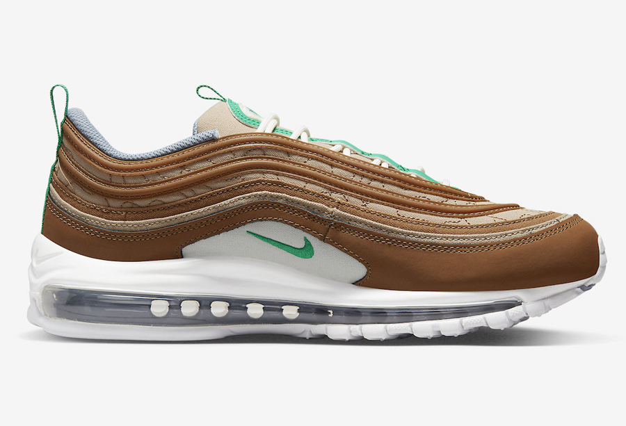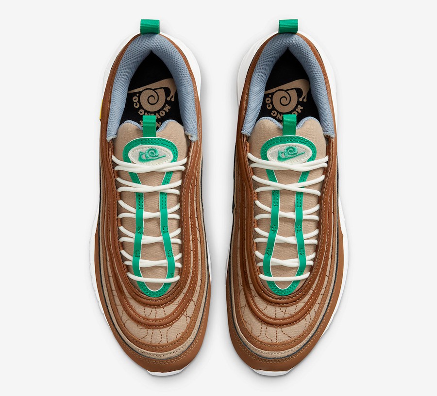 鞋面上还特别使用许多不规则的线条,来呈现出蜗牛移动的轨迹,营造出区别于传统 Air Max 97 简约风格的玩味气质。