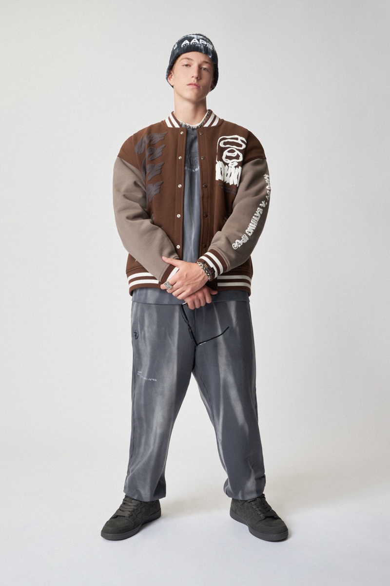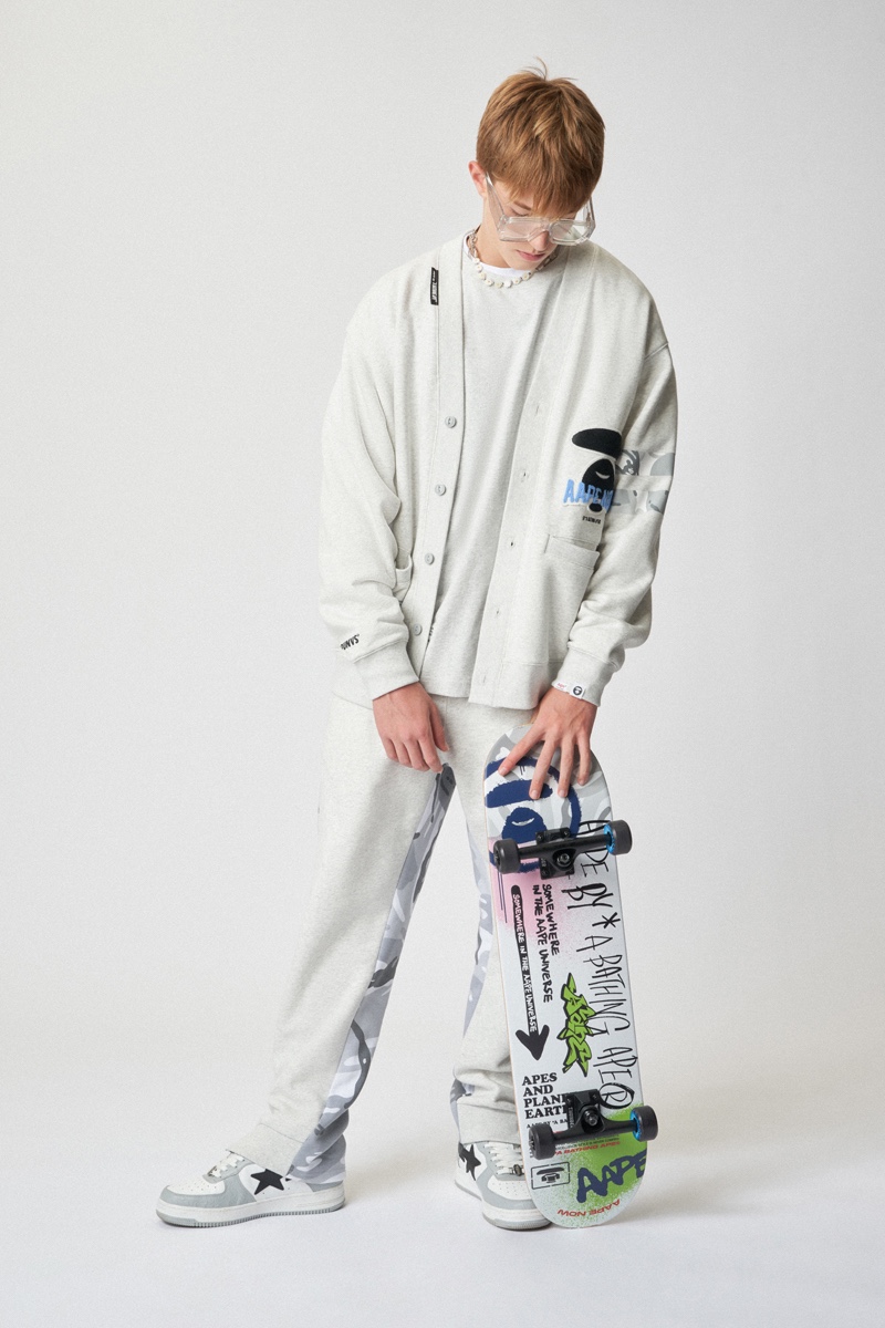 同时,伴随着 AAPE 十周年的到来,还推出了五大主题组成的全新秋冬系列男装,分别为以电竞文化与科幻游戏世界为背景的 「AAPE TEAM」(猿人队伍)、工装制服延伸而成的 「AAPEWORKERJ」(工业猿人)、汲取于滑板少年生活态度的 「AAPE HOLLYWOOD」(少年好菜坞)、受到全球知名嘻哈音乐盛宴启发的「ROLLING LOUDJ(嘻哈音乐节),以及由户外露营与军事元素整合的TOUTDOOR ARMY」(户外军事),皆是当下热门的生活方式。