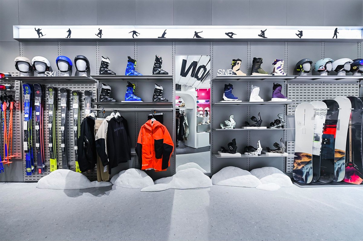 除了球鞋玩家最为关心的 Salomon 鞋款,该店还有滑雪用品专区,提供雪板、雪地靴、滑雪杖等专业设备的销售。