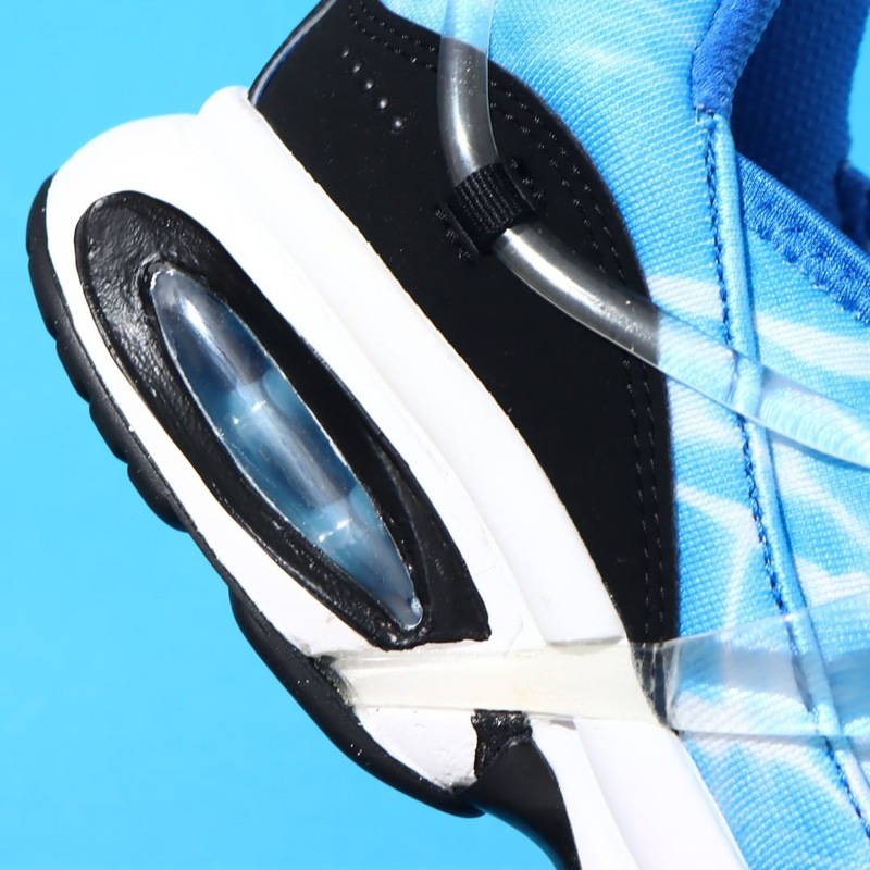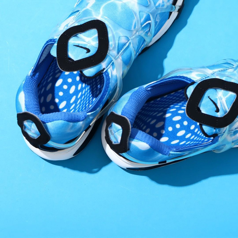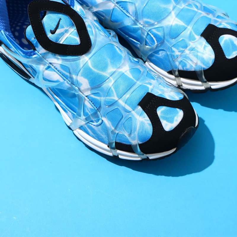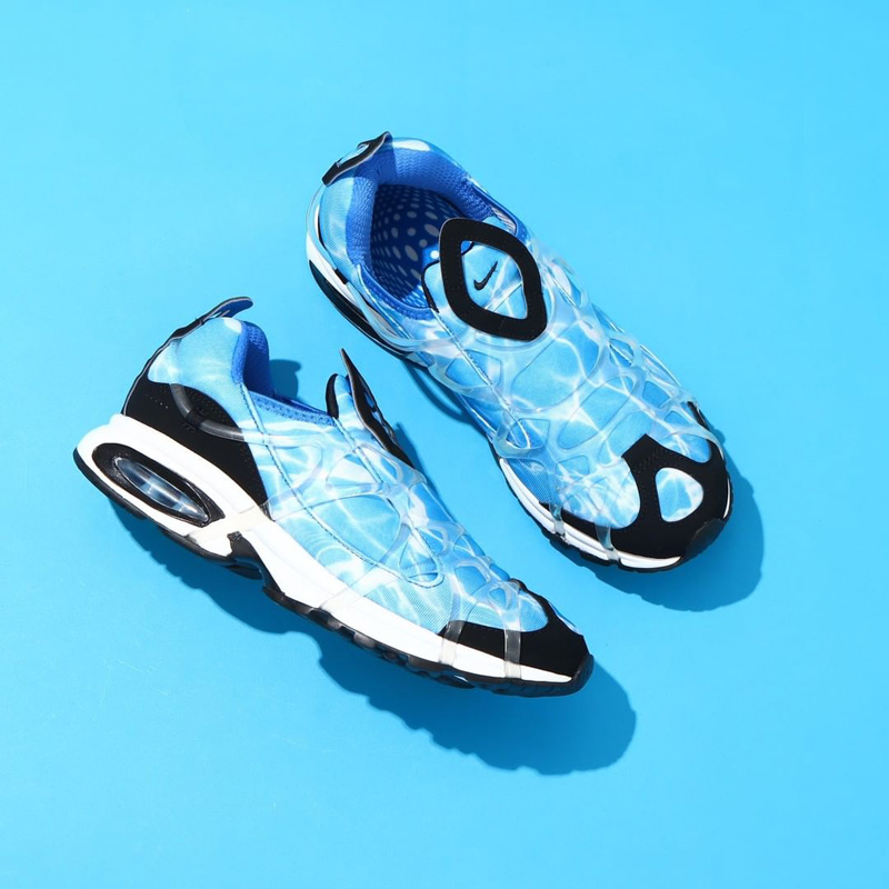 整双鞋以蓝色为主调,细节处辅以白色波光造型,营造出水纹般的波光粼粼,视觉效果格外清新。