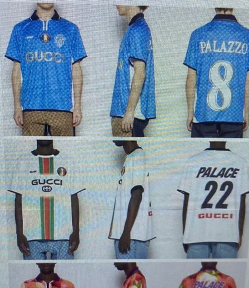 随之,还泄露出了印花连帽卫衣、 印花牛仔裤和极具 Palace 风格的联名足球球衣,无论是哪一件产品都将联名身份展示的一览无遗。