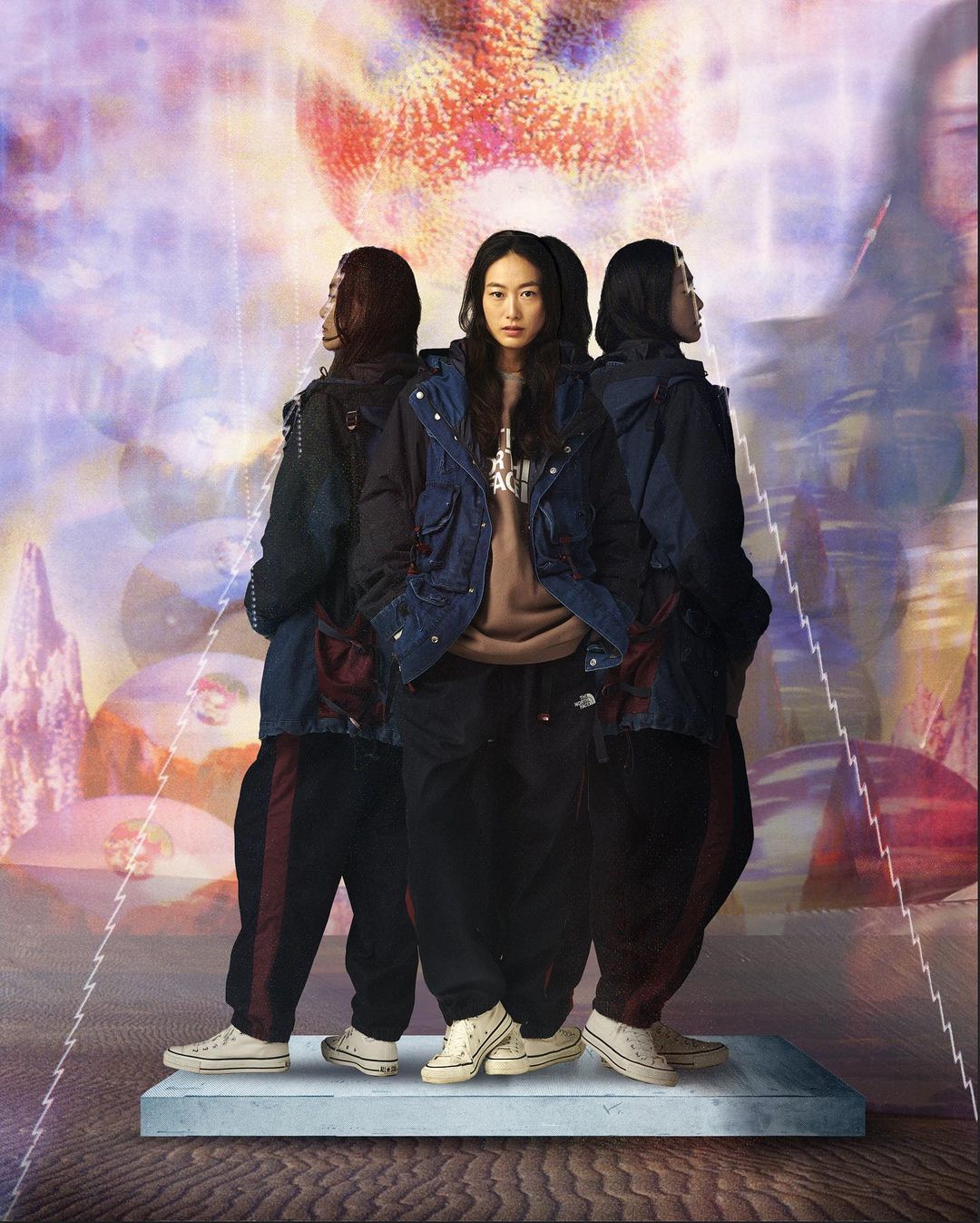 冠希哥与爱人秦舒培最近为仓石一树参与设计的 The North Face UE 秋冬系列出镜,上脚今年最新 CLOT x Jordan Delta 2 格外醒目。