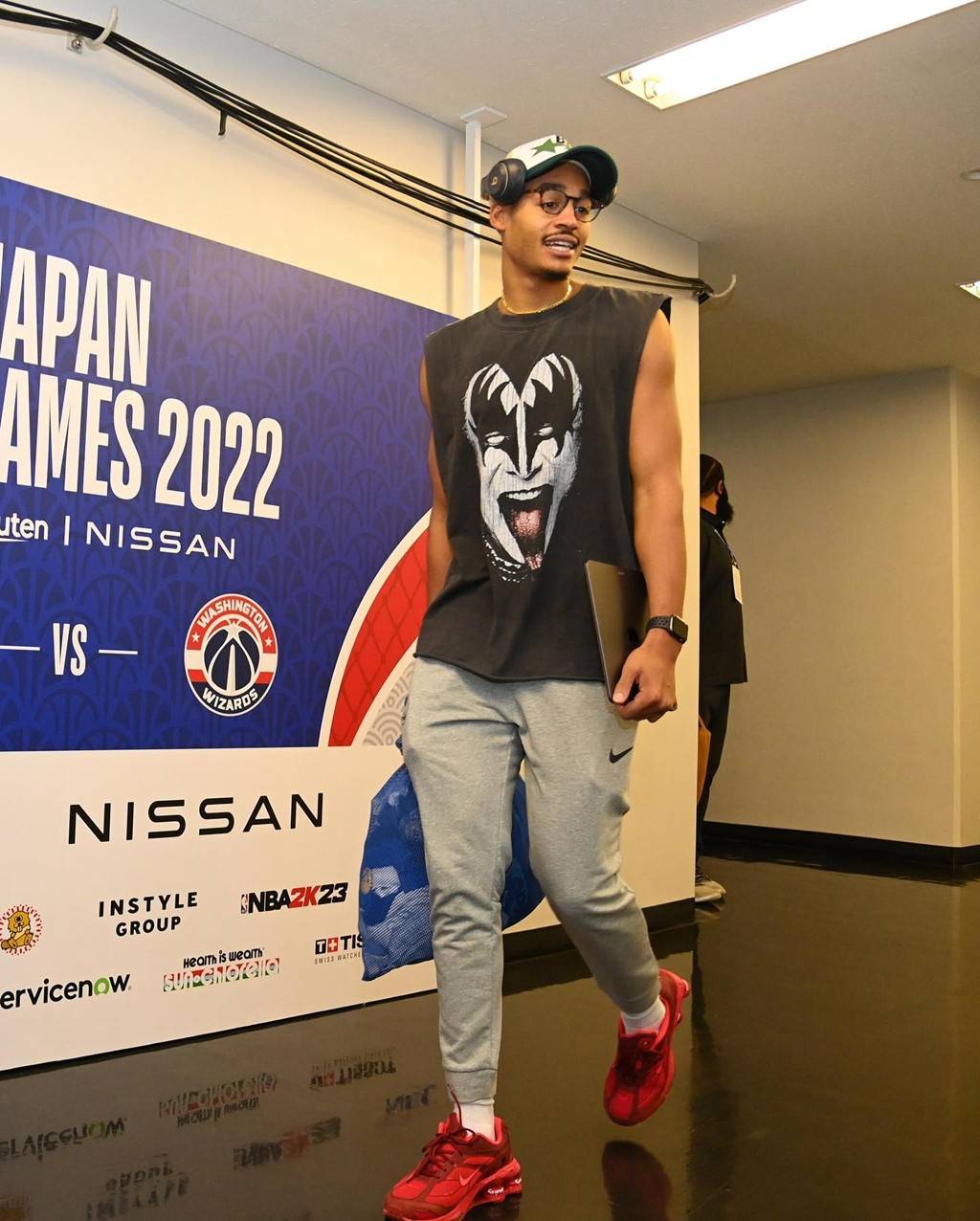 为什么把普尔和格林放在一起介绍呢?大家懂的都懂!同样是之前的 NBA 日本赛期间,普尔脚踩 DJ Soda 同款 Supreme x Nike Shox Ride 2。