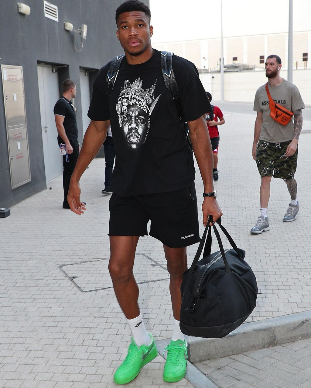 上周在阿联酋首都阿布扎比举办的 NBA 季前赛中,字母哥一改往日低调作风,脚上的 OFF-WHITE x Nike Air Force 1 Low “布鲁克林” 十分显眼。