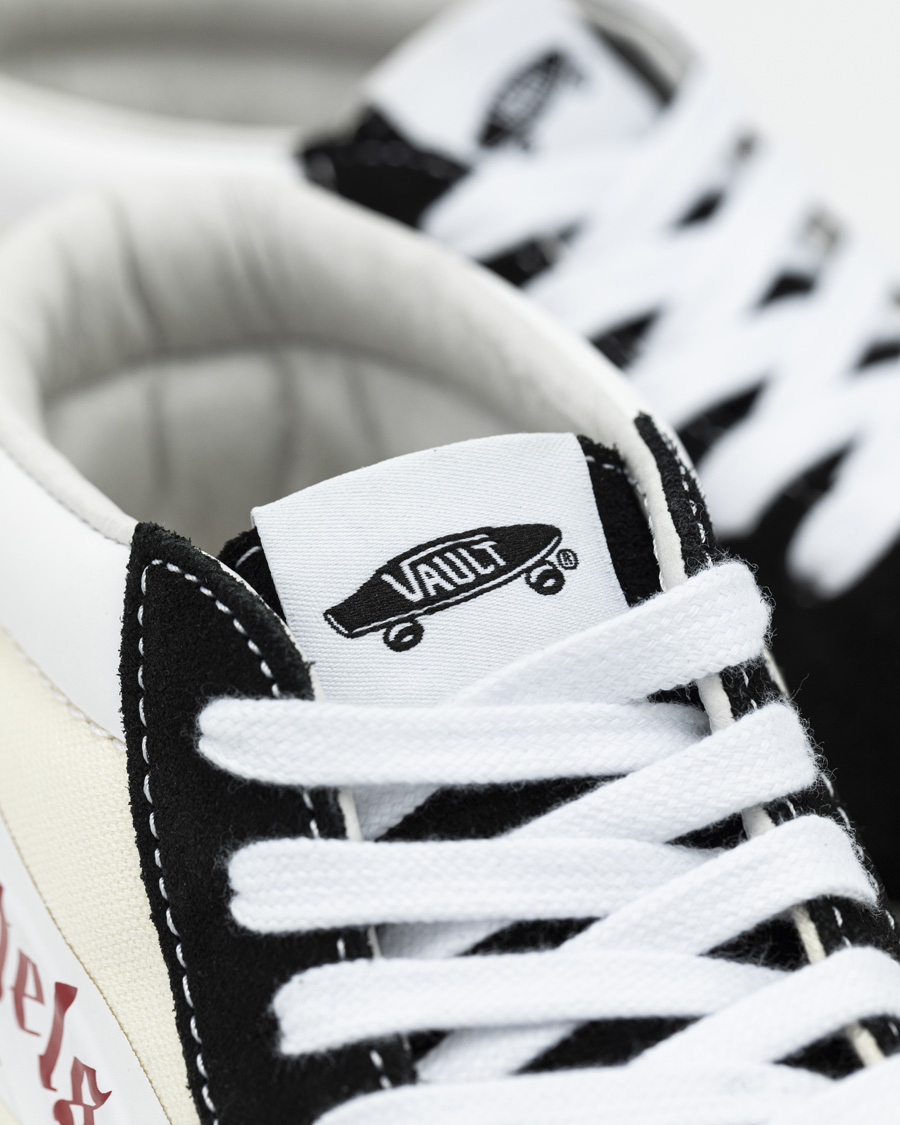 鞋头黑色部分采用规格较高的麂皮材质,米白色部分则是以 Vans 最传统的帆布材质打造。