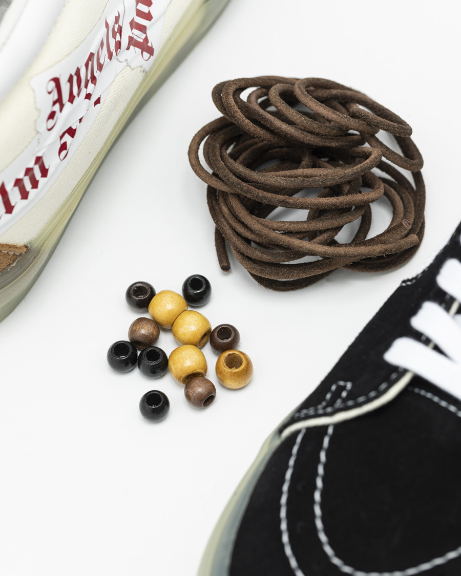 此外,本次联名还附赠了圆形牛皮鞋带和大小不一的实木圆形串珠,提高可玩性的同时,也赋予了鞋款一部分国风气质。