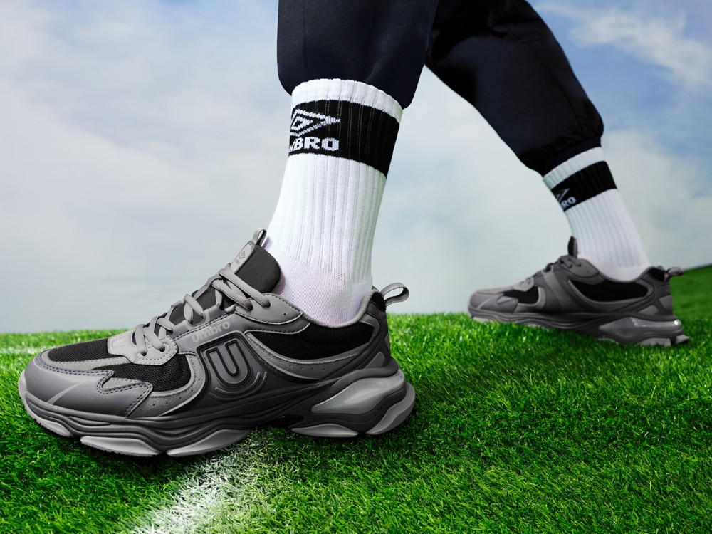 UMBRO 茵宝新款 GALLOP 星界鞋,以 UMBRO 茵宝的字母 “U” 与足球场的建筑线条为灵感,将球场建筑的几何美学融入到鞋款中。