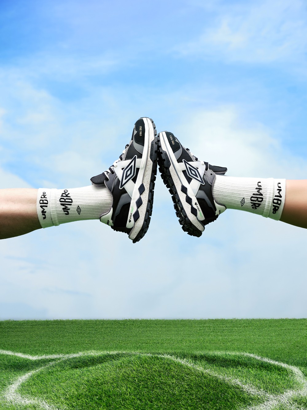 UMBRO 茵宝秋冬系列的 FUSE 飞船鞋,诠释经典足球鞋 SPECIALI 的 A 形支架设计理念,以经典拼接鞋面呈现,同时将钻石双菱形 Logo 巧妙融于后跟与鞋底,彰显品牌身份。