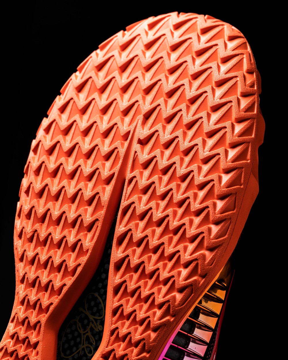 最后以带有蜂窝抓地止滑科技的外底收尾,可以使鞋身更加轻量化,并且带来优秀的抓地效果。