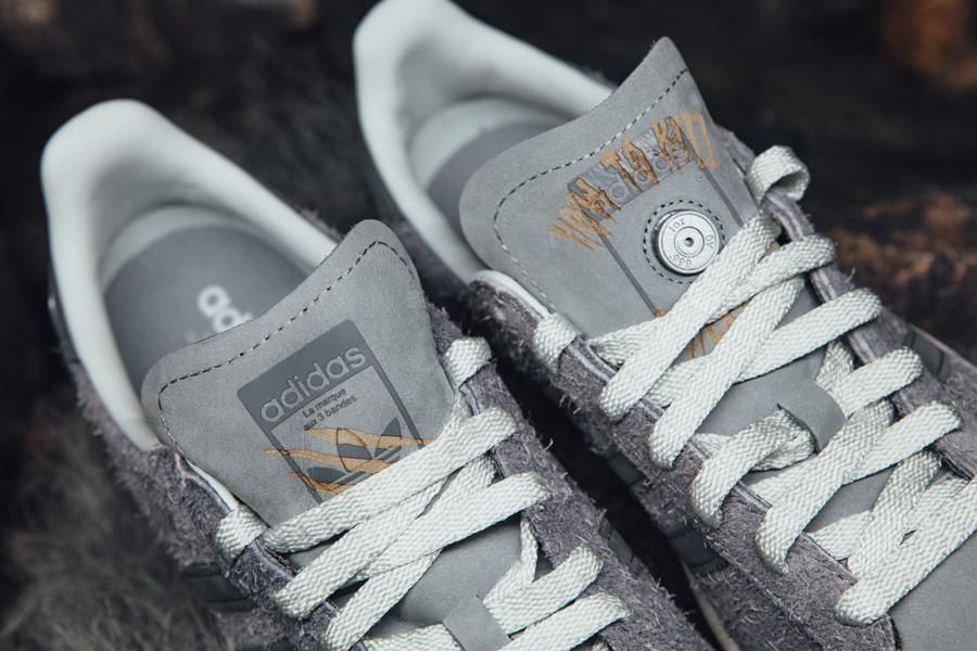 细节方面更是相当到位,在两只鞋的后跟和左脚鞋舌处都带有嵌入子弹的设计,仿佛真的将丧尸击毙一样。