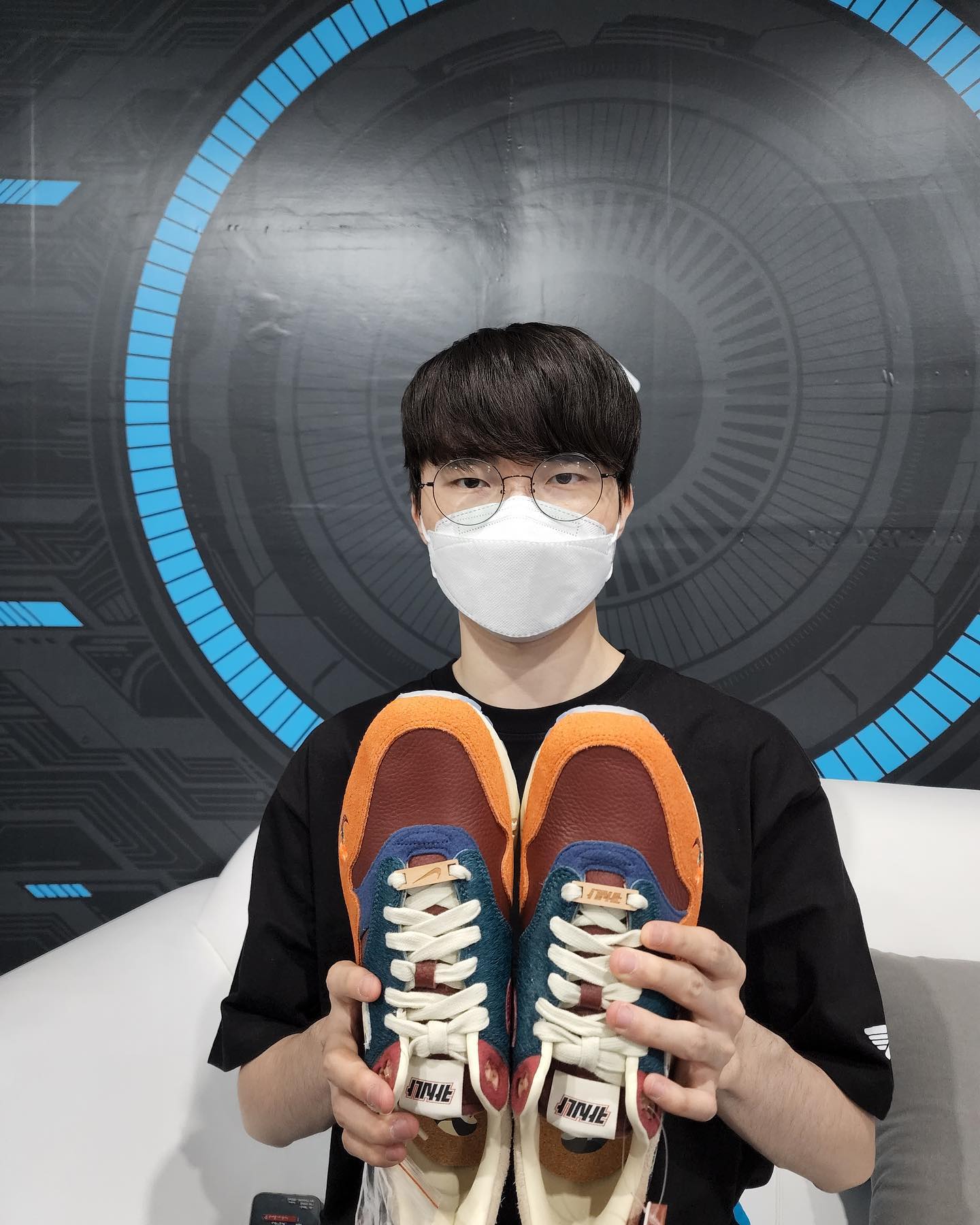 在近期,Faker 在 INS 上晒出了 Kasina x Air Max 1 联名鞋款,看来 Faker 老师还是更喜欢自己本国人设计的鞋款的。