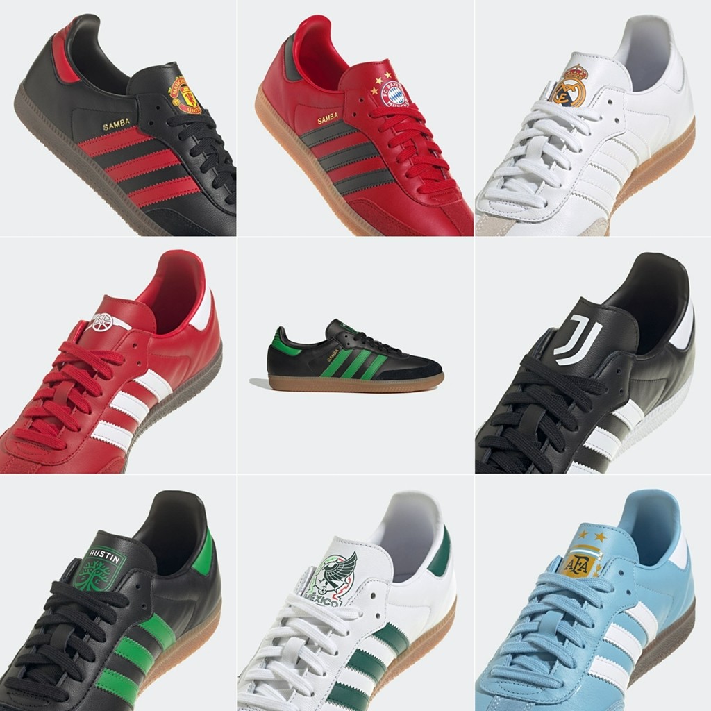 此次系列,采用十分经典的 Samba 鞋型,并将世界各地各个联赛的豪门和国家队元素加入其中。