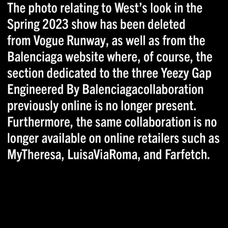 可即使二人关系再好,有些事该变也还是会变的,比如 BALENCIAGA 已经删除了曾经发布在官网、YouTube 等平台上含有侃爷走秀的部分,之前为 YEEZY GAP 设计的产品也已不复存在,甚至国外的各大在线零售平台也纷纷下架了相关产品,不难看出侃爷这次 “玩” 过了…