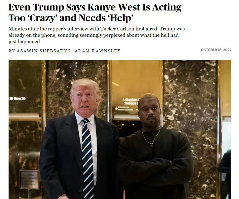 面对如此整活川普甚至都表示:自己的好友 YE 近期一系列行为过于疯狂,甚至自己当年都不敢这么做 觉得他需要 “专业帮助”,看来就连川普都认为侃爷确实是有病。