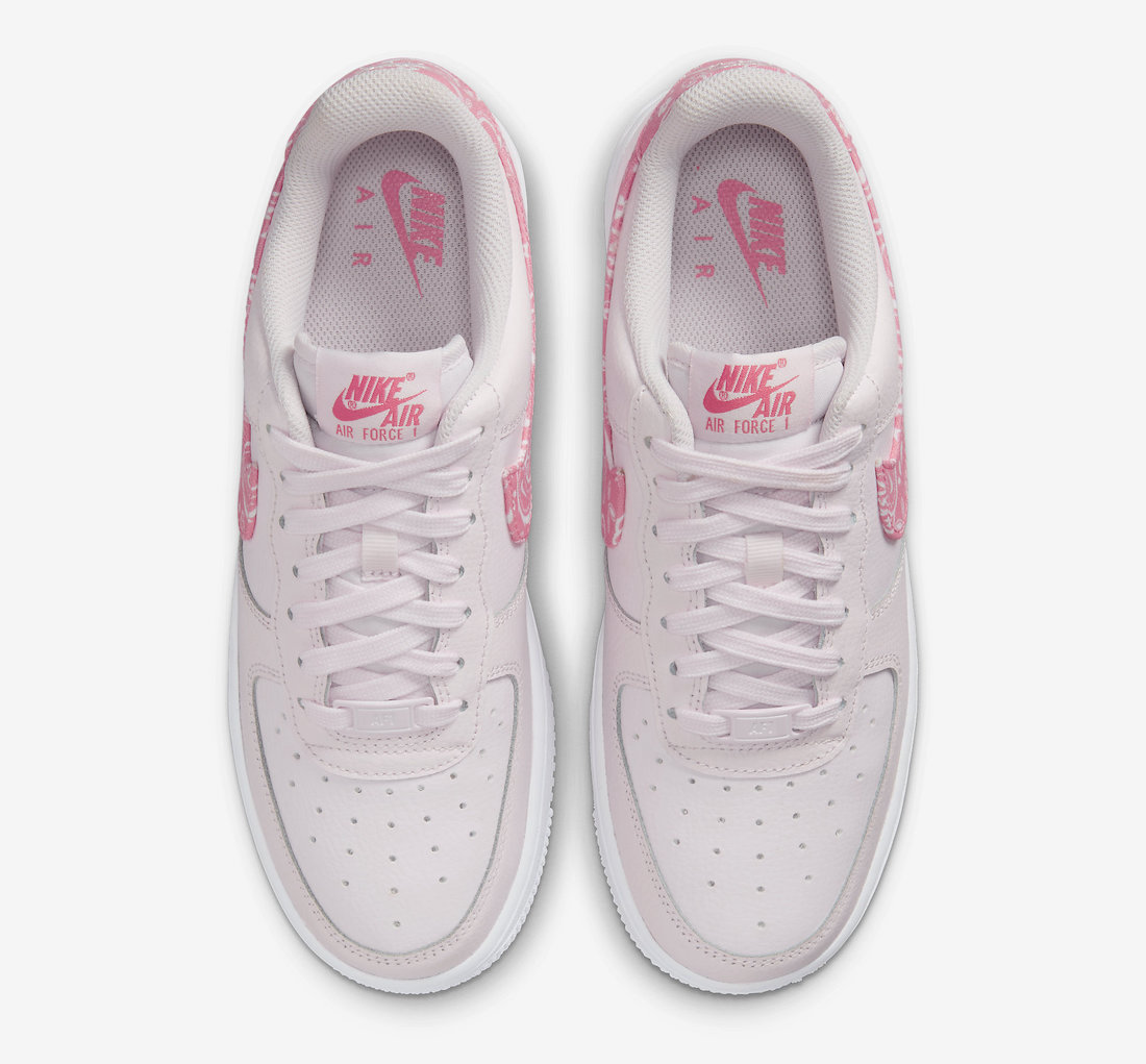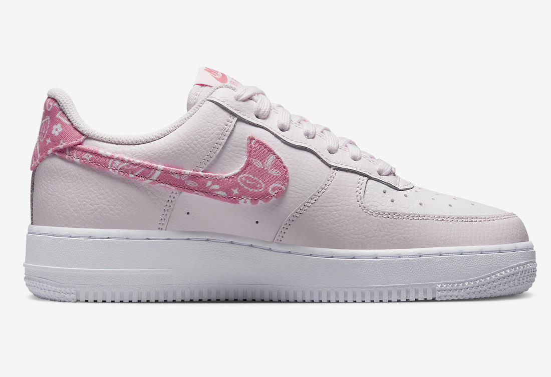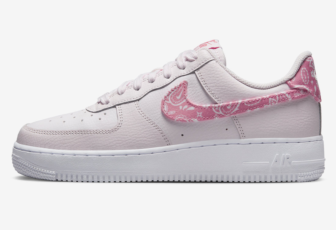 Swoosh 则依然采用腰果花纹路的织物,粉色相比鞋身要更浓艳一些。