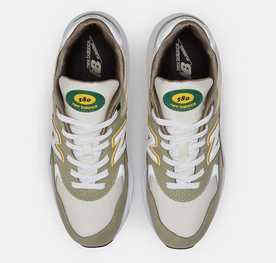鞋舌处的黄绿标签还将 580 型号标注出来,彰显出鞋款身份。