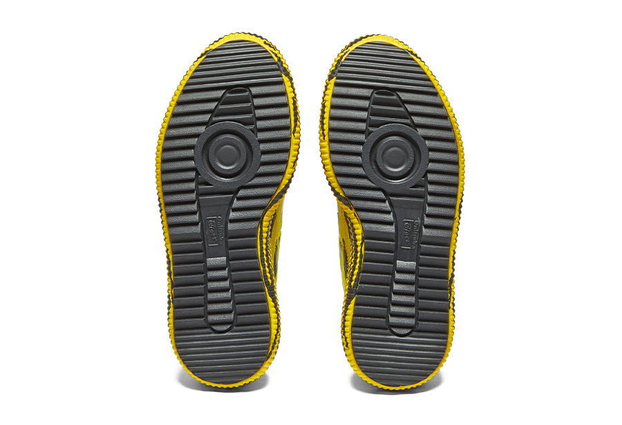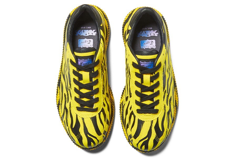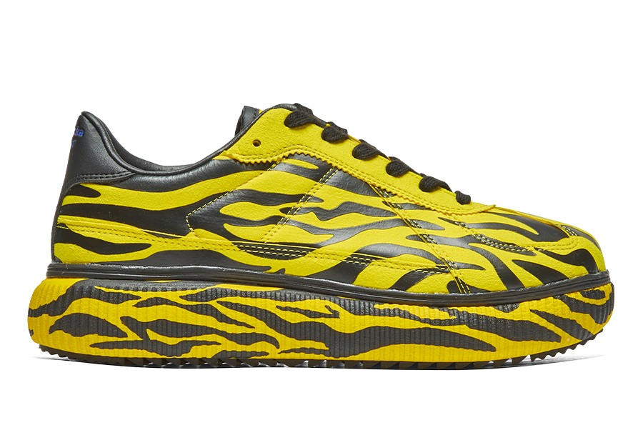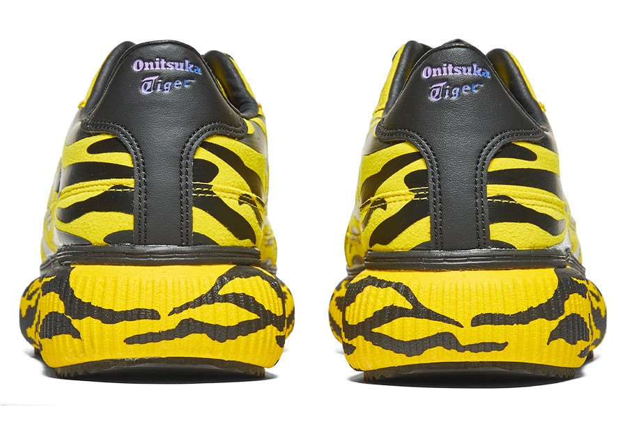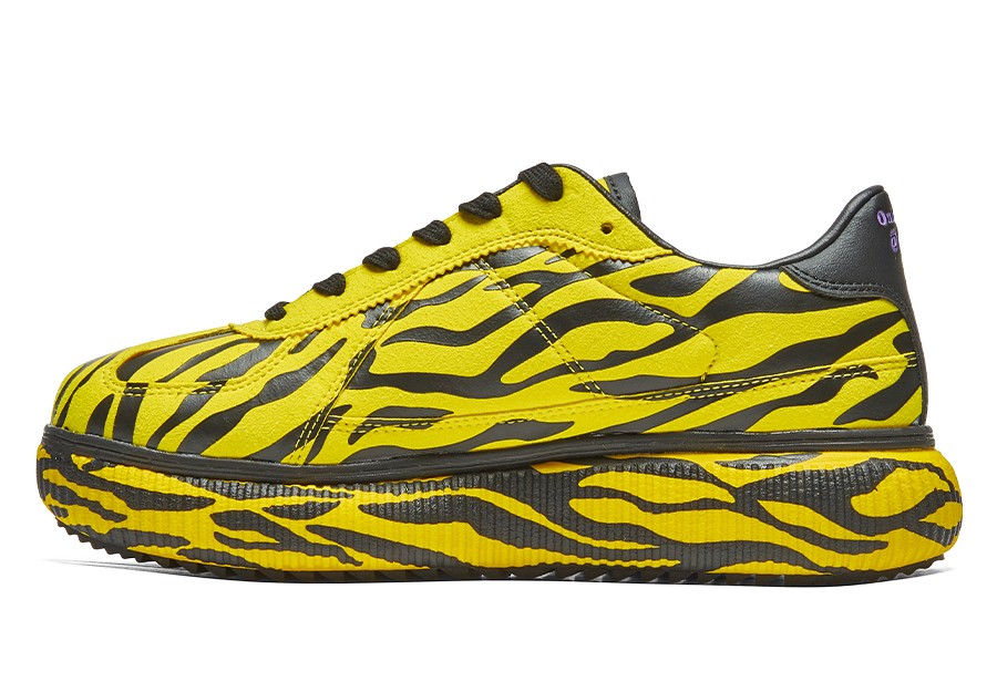 整双鞋以经典的 Delecity 鞋型为灵感设计,采用黄色和黑色虎斑条纹搭配,呈现出极强的视觉效果,十分高调亮眼。
