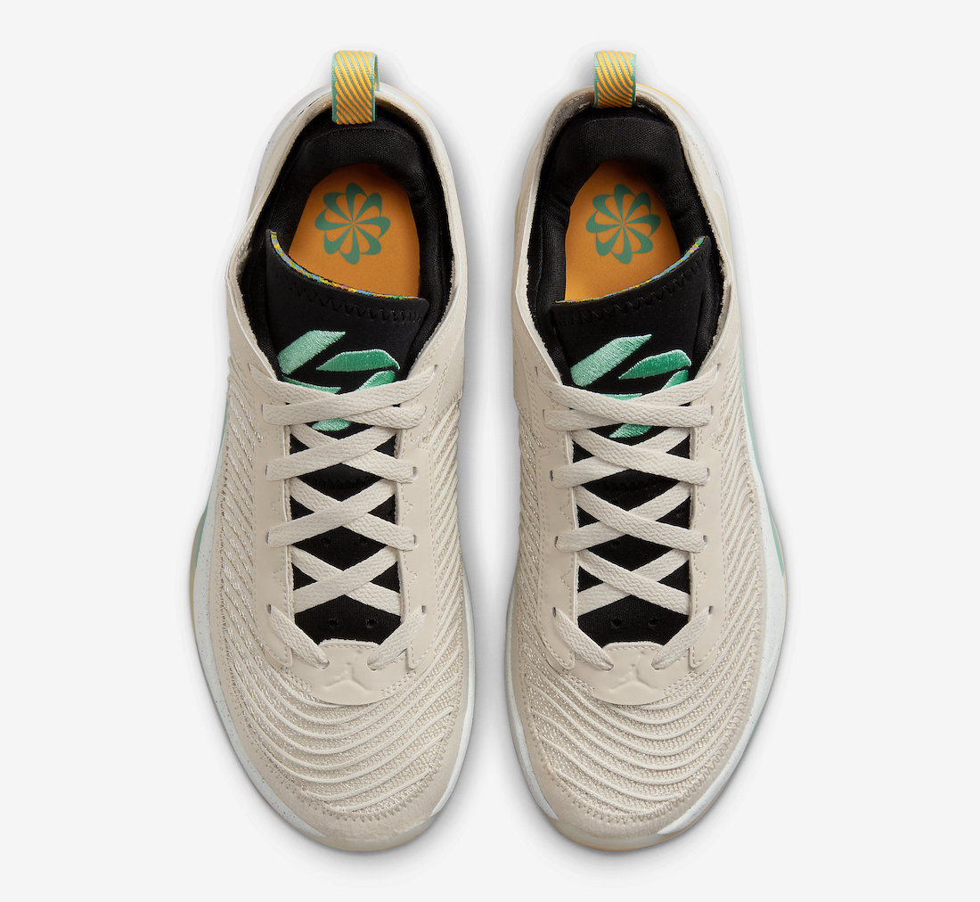 整双鞋采用浅棕色为主色,黑色和蓝绿色点缀,十分低调。