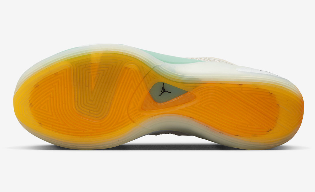 白色中底搭配橙色外底,完善整双鞋设计。