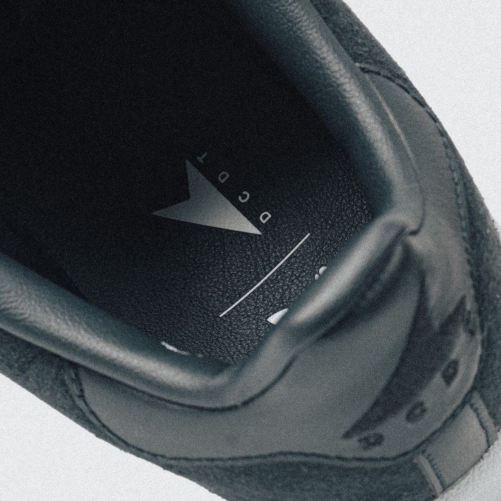 侧身 adidas 经典的三道杠 Logo 以皮革材质妆点,同时还在印有与鞋身相同颜色的「DCDT」字样,彰显联名配色特殊身份。