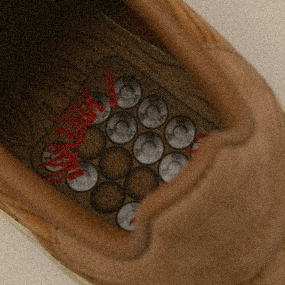 鞋垫上带有分配不均的多子弹图案,相比于「木钉」主题,小编认为说他是用来放置「银色子弹」的木质盒子会更加合理。