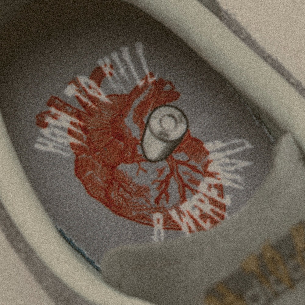 右脚的鞋垫上添加了子弹射入心脏的设计,这也是电影中能够真正杀死丧尸的唯一方法。