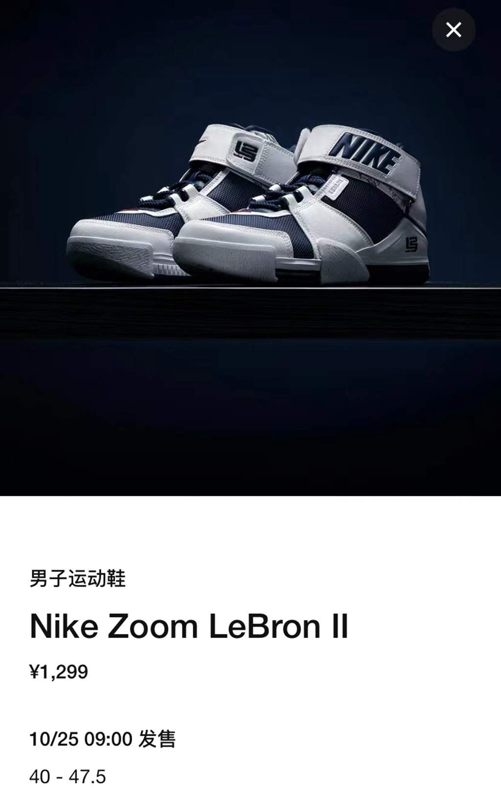 目前,SNKRS 中国 App 已经正式上架这双 Nike Zoom LeBron 2 “USA”,并将于 10 月 25 日上午 9:00 正式发售,定价 ¥1299 元。