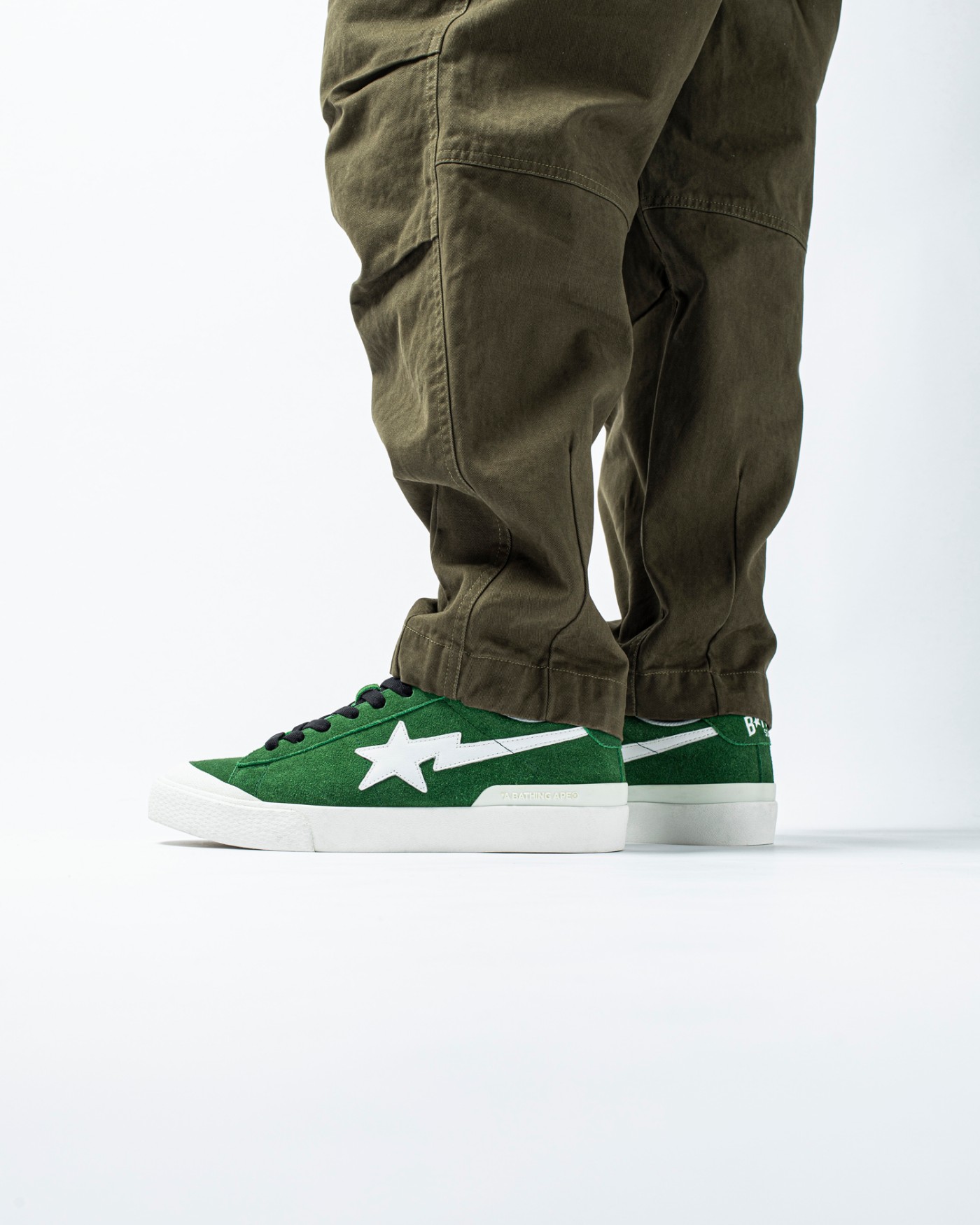 全新的 BAPE MAD STA 鞋款区别于以往的花哨造型,采用了通体绿色打造,造型十分清新百搭。