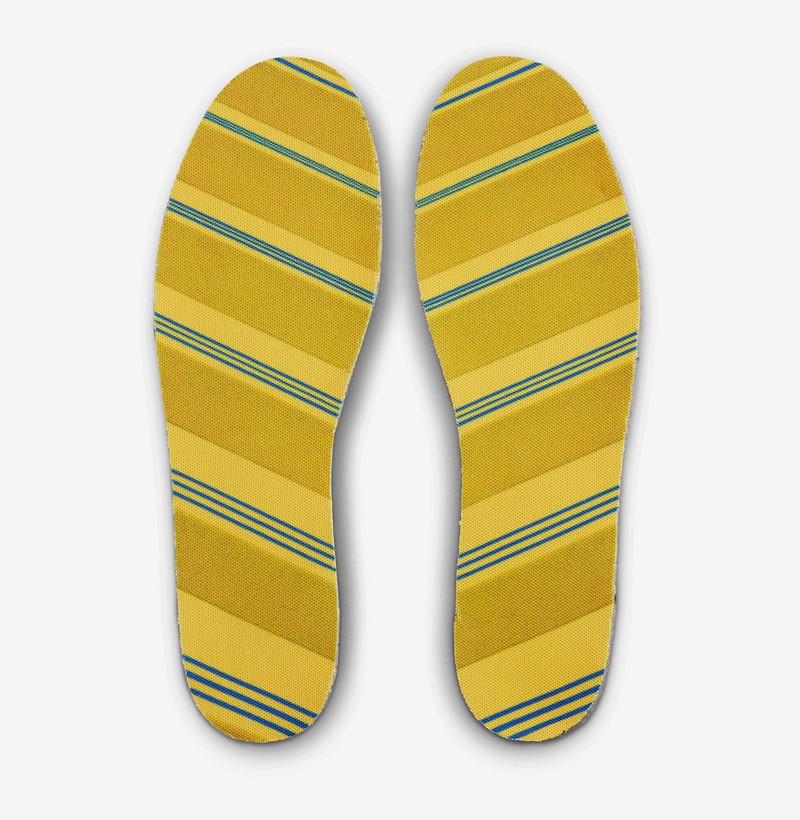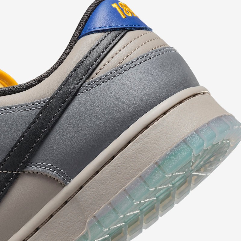 整双鞋在配色方案上选择了两种深浅不一的灰色为主调呈现,辅以黄色蓝色妆点细节,营造出十分高级的视觉效果。