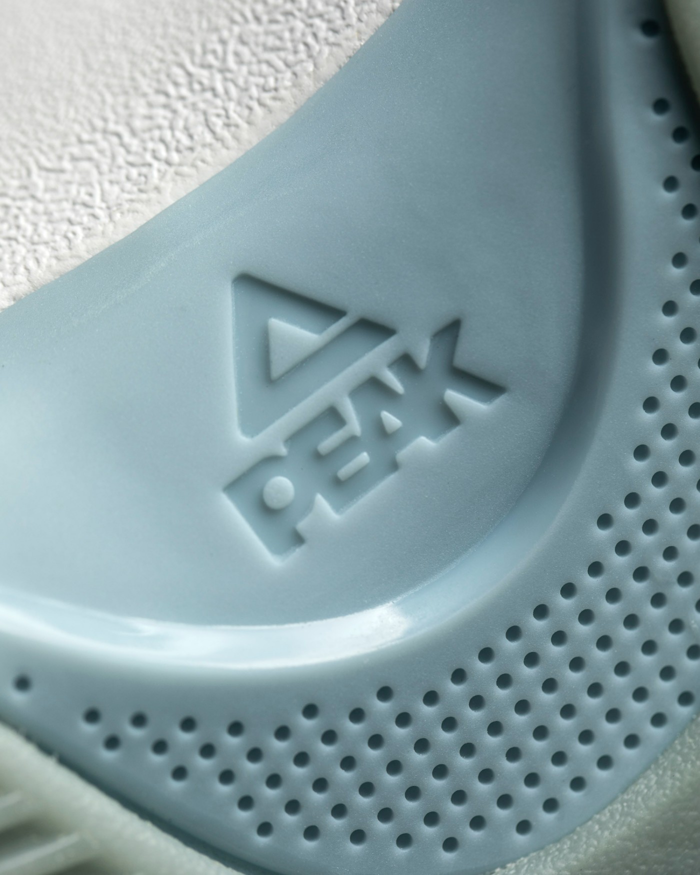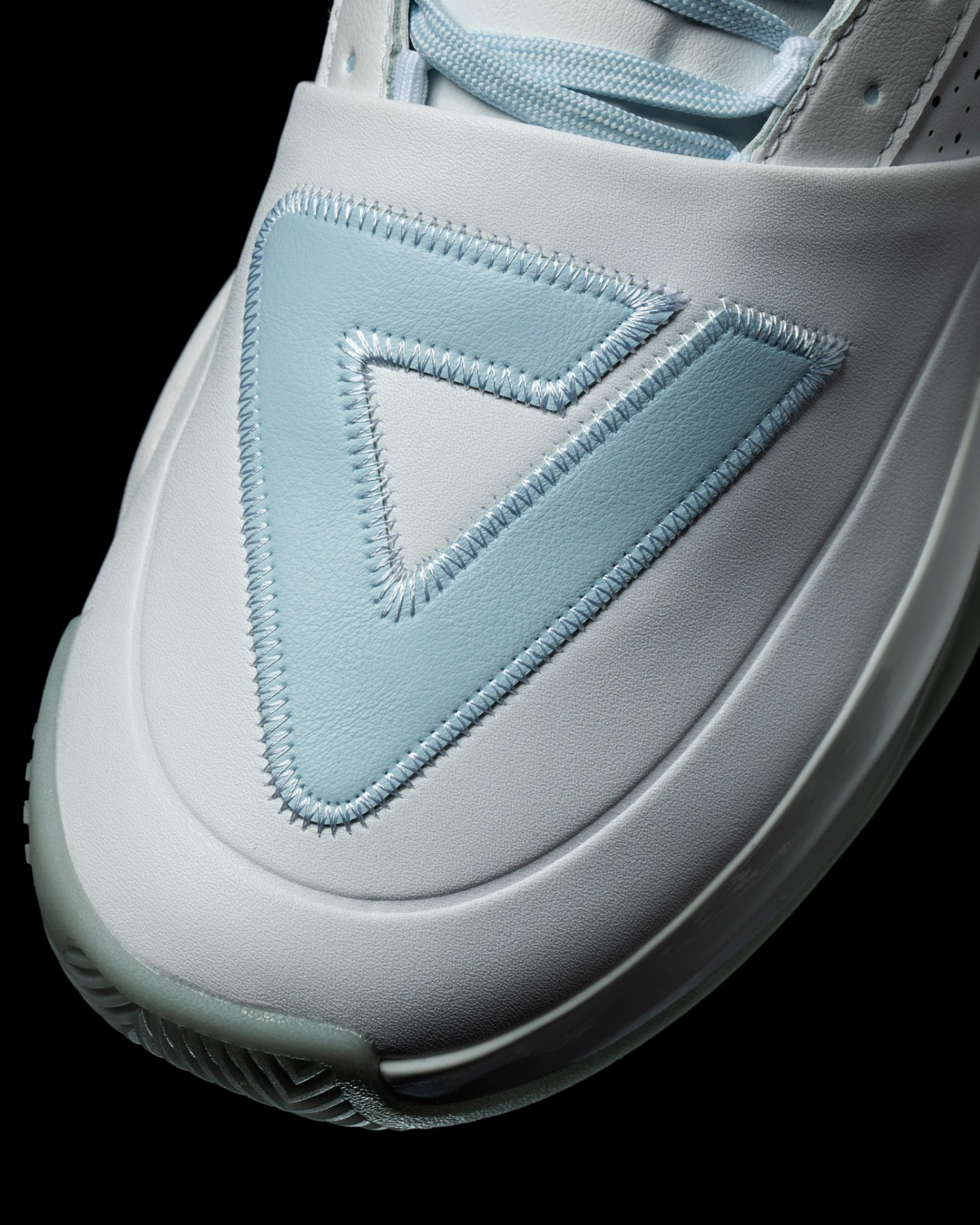 外底内嵌的长方形尼龙板同样呈现冰蓝色,呼应鞋面设计的同时带来启动助推作用。
