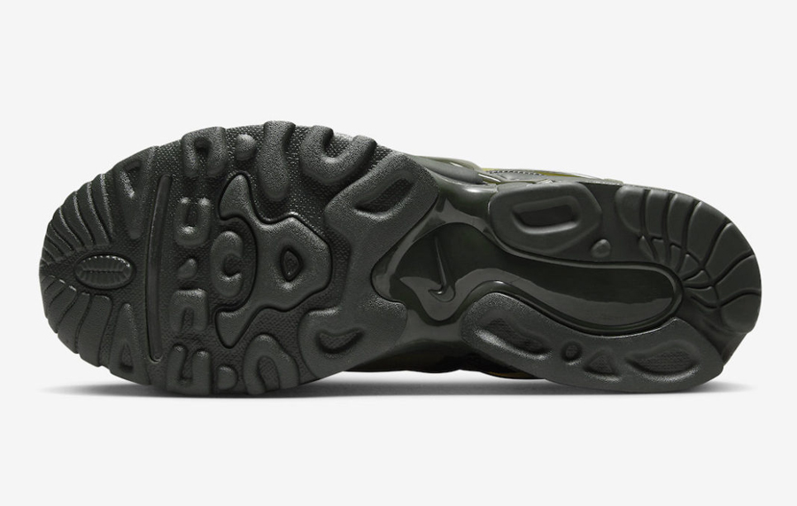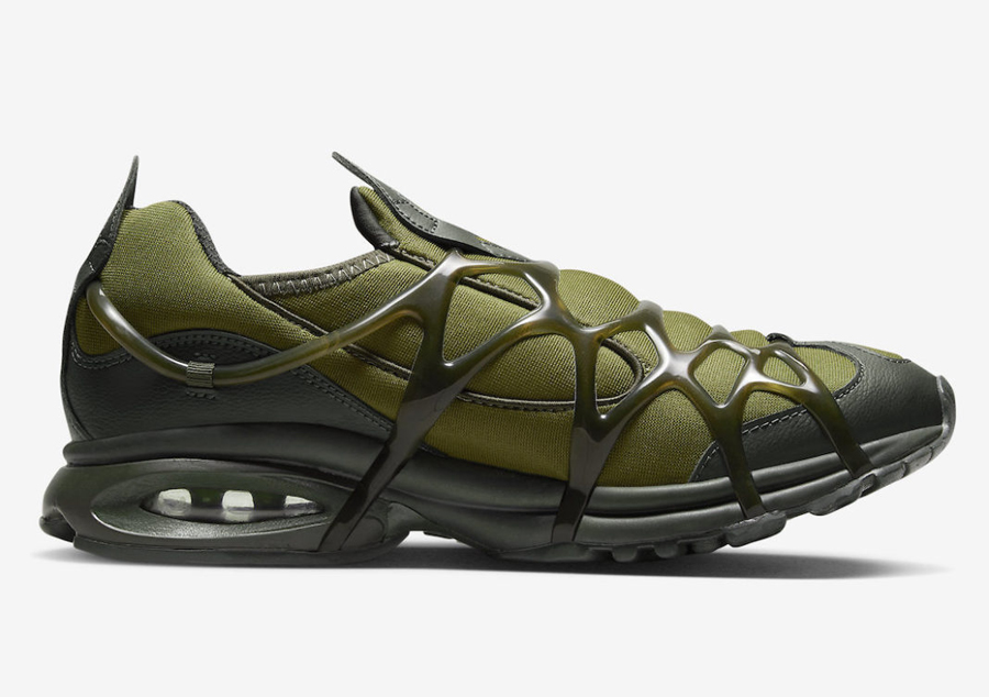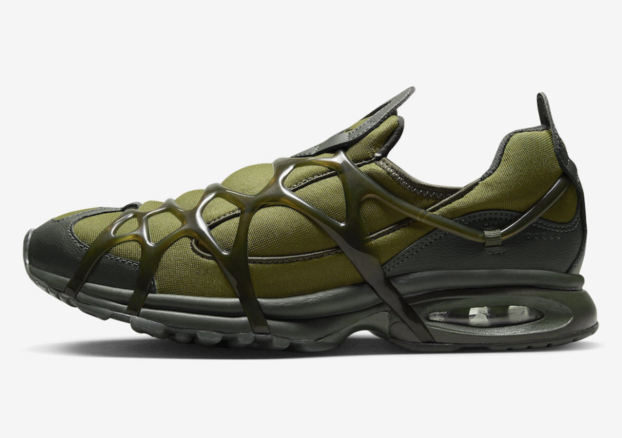 整体采用军绿色调覆盖整个鞋身,标志性的 “血管” 支撑辅以红褐色勾勒,更具视觉冲击。
