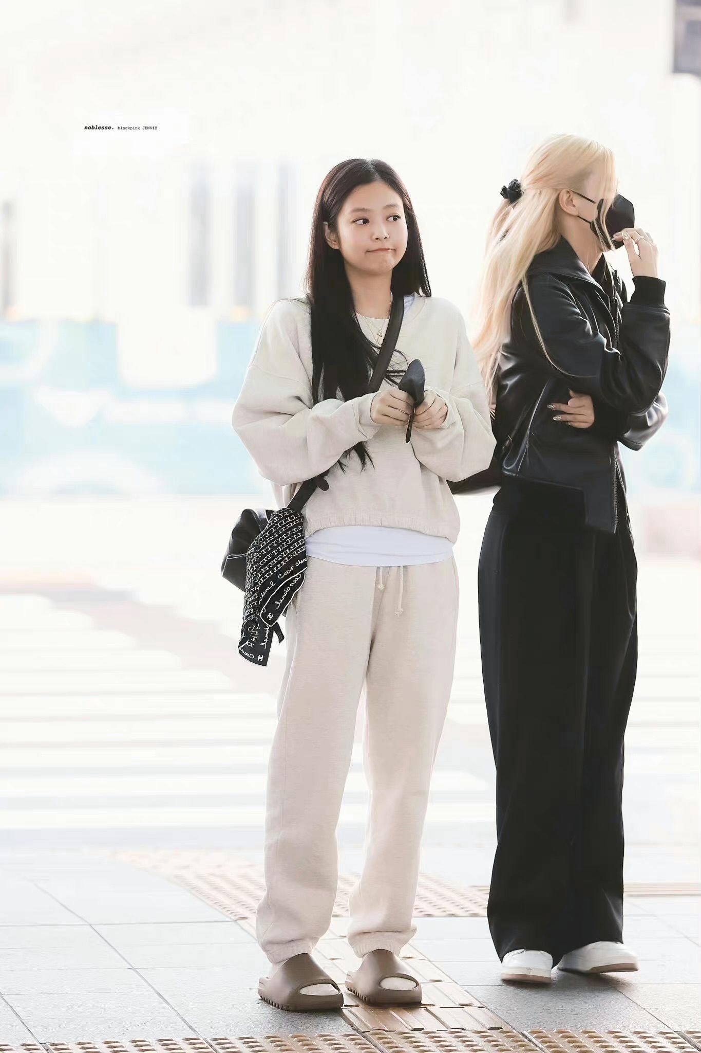 无独有偶,最近 Jennie 同样上脚了 Yeezy 拖鞋,搭配一身米色卫衣套装,随性又舒适。