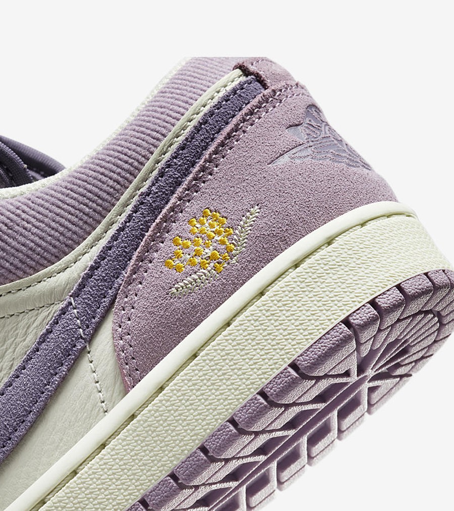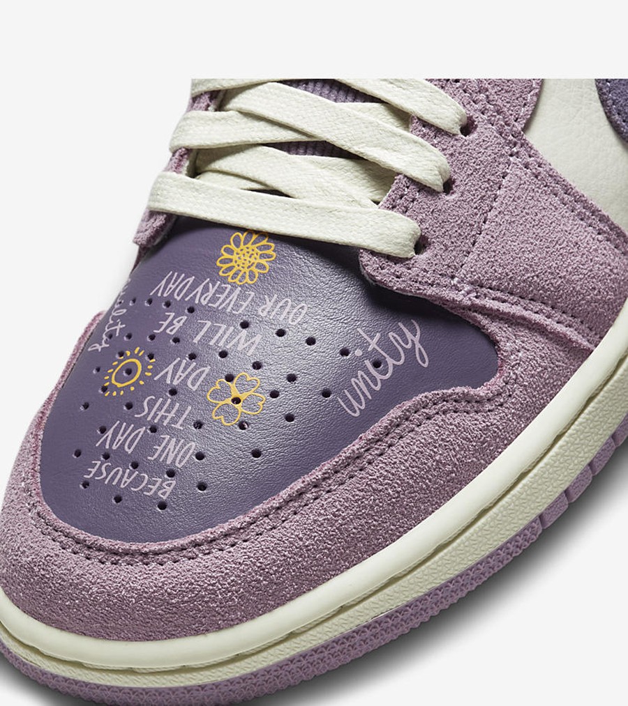 整双鞋在颜色使用相当多样,以薰衣草紫作为主色调,额外添加白、黄色构建色彩体系。