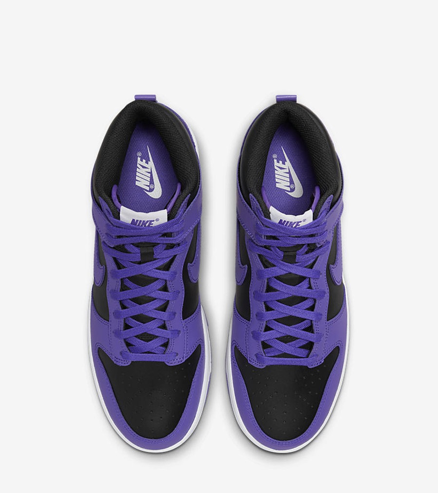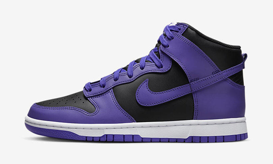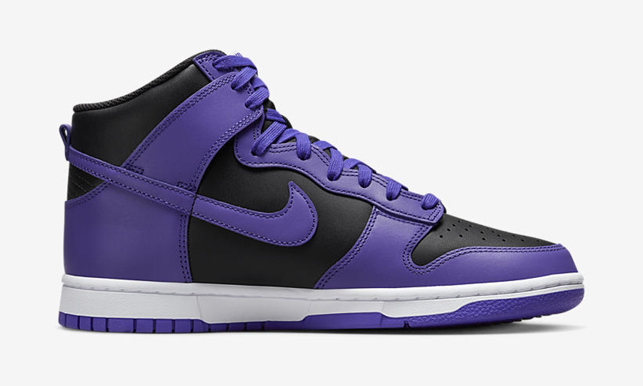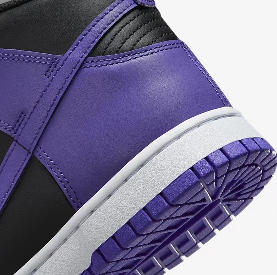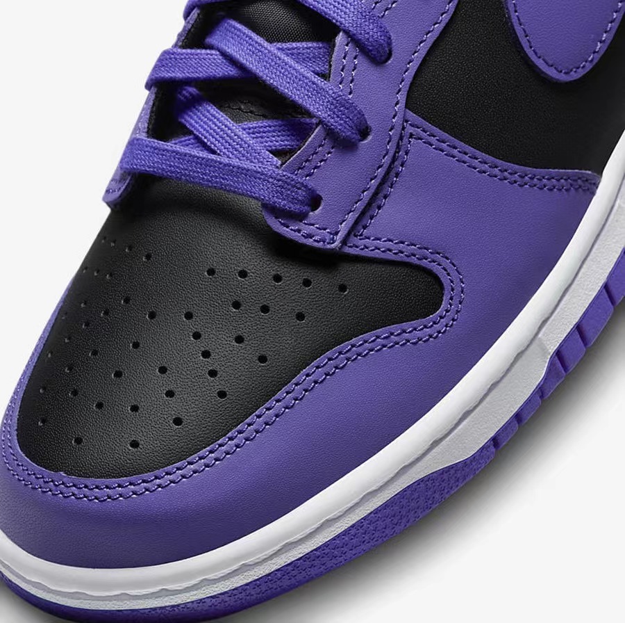 全鞋在颜色上非常像反转的藤原浩联名款 “Beijing” Dunk Hi,将黑色作为底色选取紫色对鞋身进行勾勒。