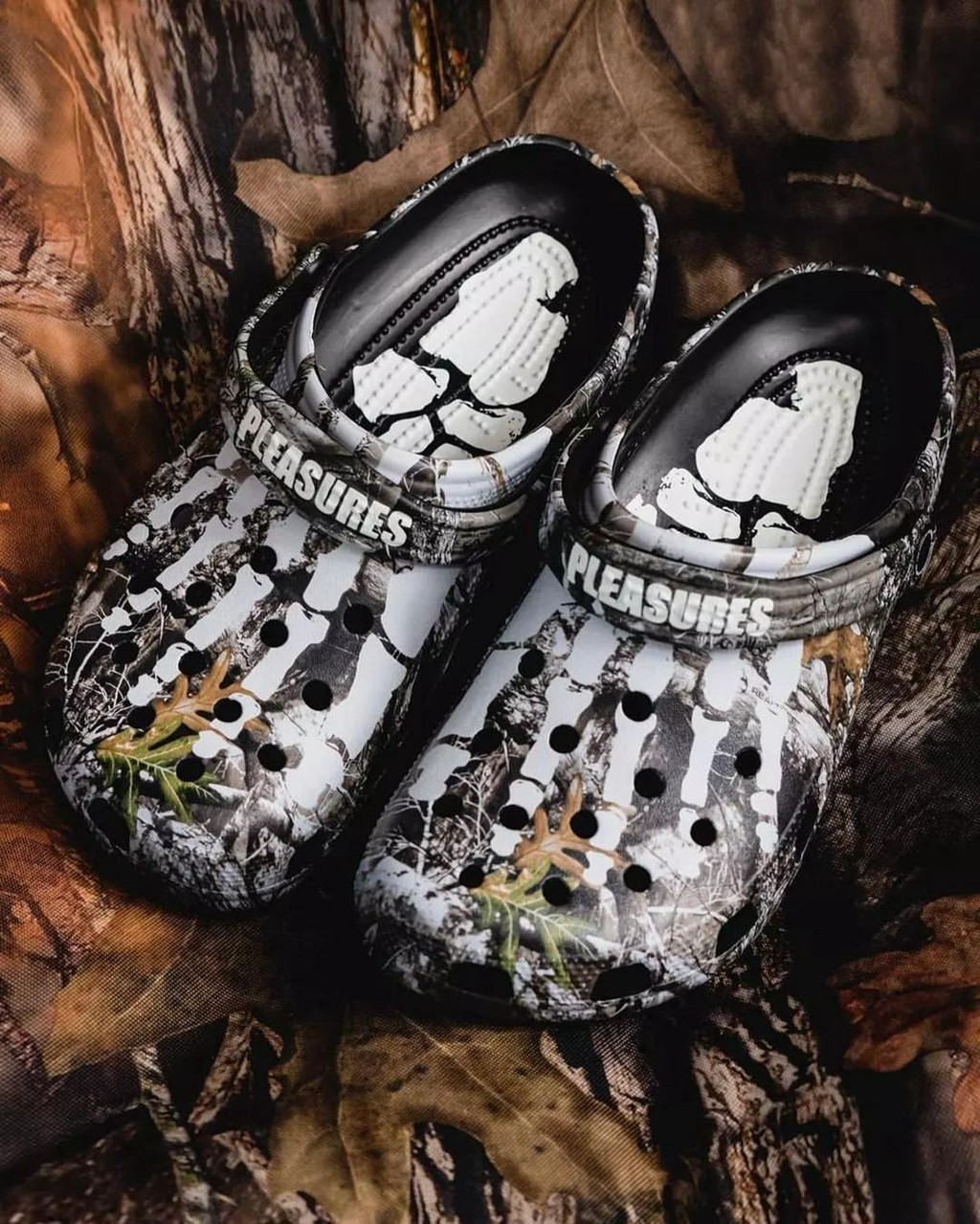 作为 “最能整活儿” 的鞋款品牌,Crocs 成功地在今年又火了一把。 哪怕夏季已经过去,Crocs 仍在不断推出新品,比如最近刚曝光的万圣节系列。 鞋型上选择了最为经典的 Clog,并选用万圣节最常见的骷髅元素当做灵感。 其中包含两种款式,一双是以黑色为底色,覆盖夜光骷髅骨架。 另一双则在第一双的基础上,追加 “坟头草” 的印花,营造惊悚氛围。 据悉,全新 Crocs 万圣节系列将在 10 月 31 日万圣节当天正式发售,发售价格暂未释出。 喜欢的朋友不妨持续关注我们的后续报道!
