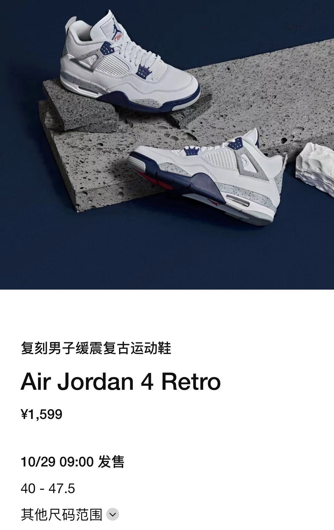 Air Jordan 4 Retro “Midnight Navy” 将于明天早上 9 点正式在 SNKRS APP 发售。