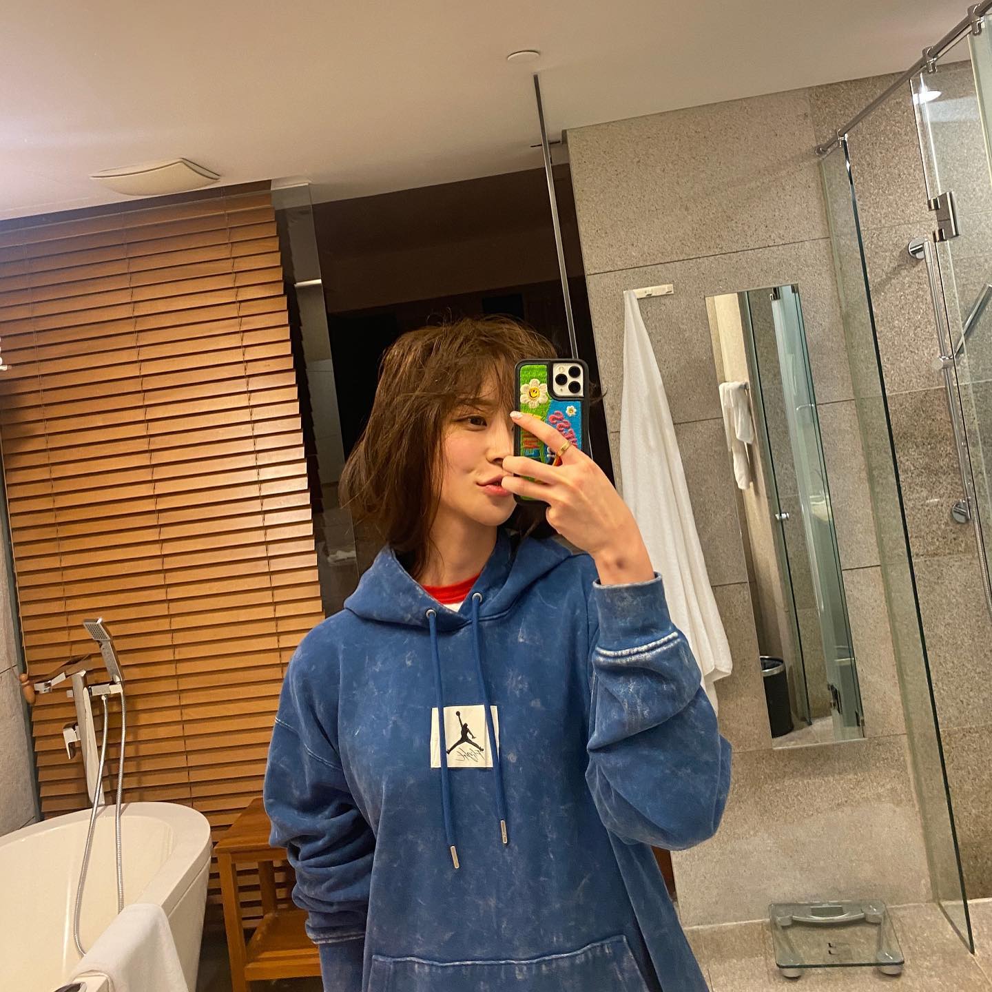 私下蓬松长发与 Jordan 做旧卫衣,又瞬间散发出慵懒的女友风,让人毫无抵抗力。
