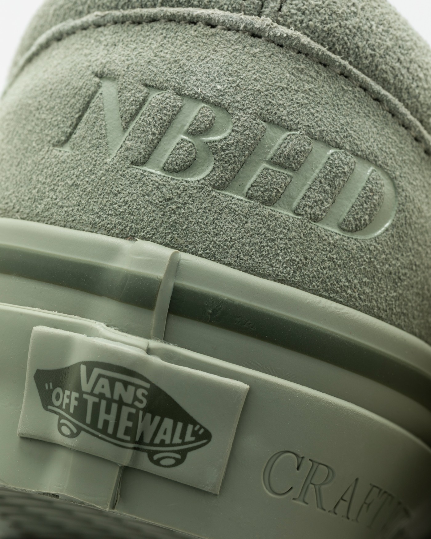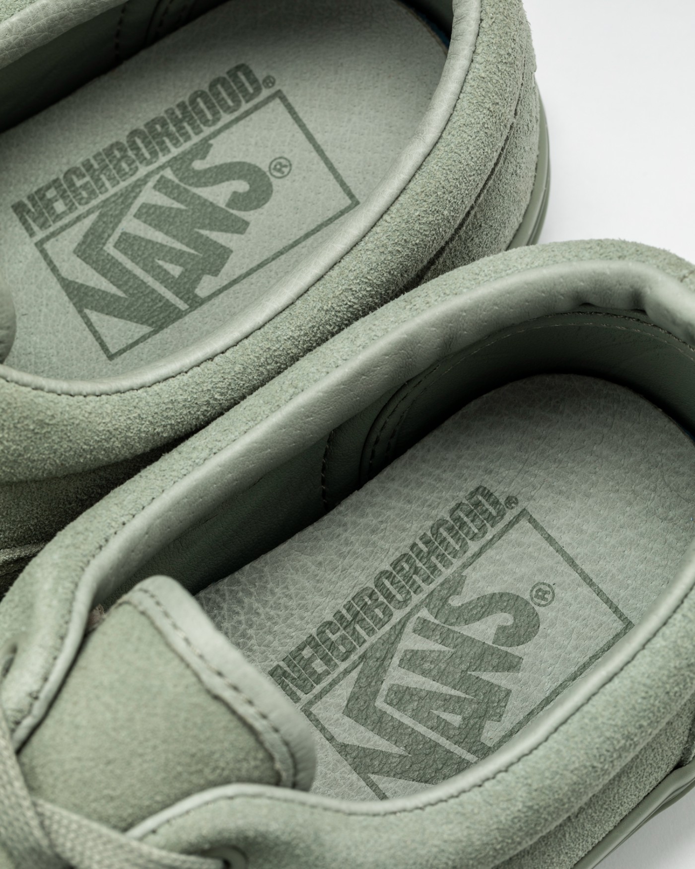 鞋垫上印有 NEIGHBORHOOD 和 Vans 字样,将原本的布料改为了皮革材质,将鞋身质感大幅度提升。