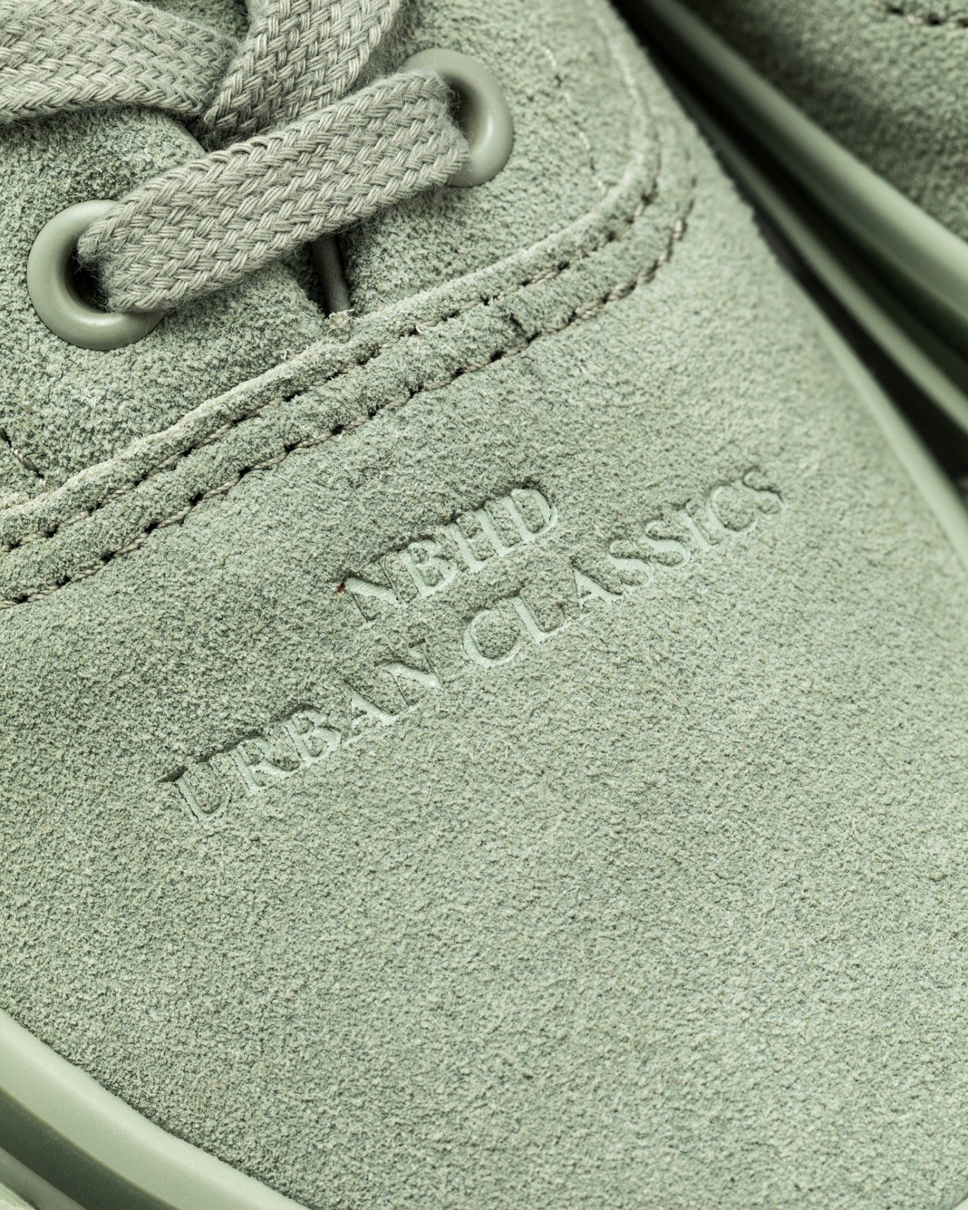 鞋头使用热压手法点缀 NBHD 和经常出现在自家 T 恤上的「URBAN CLASSICS」字样,彰显联名配色特殊身份。