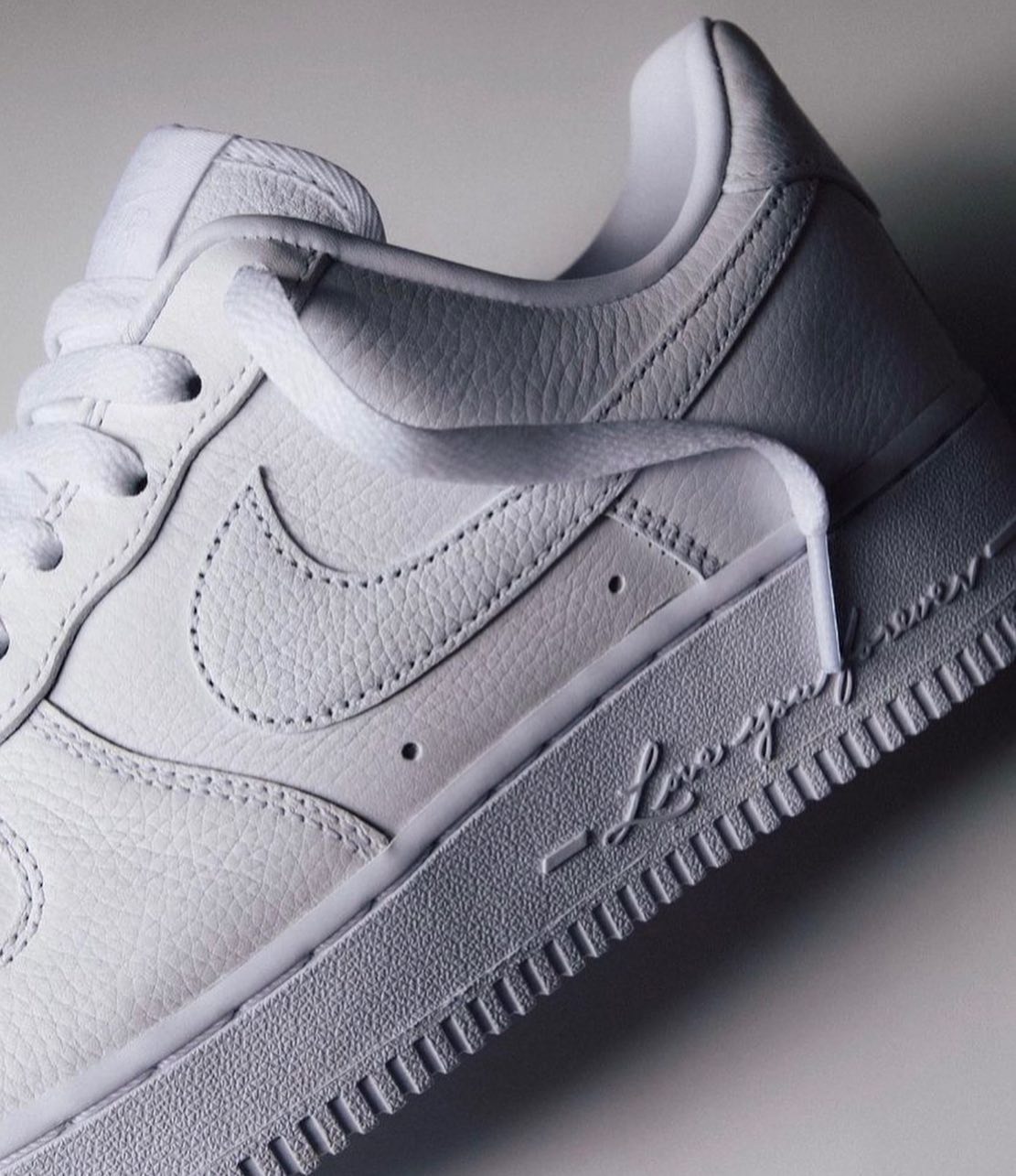 鞋身采用 Air Force 1 Low 标志性的纯白设计,乍看下平平无奇,但其实全是细节。